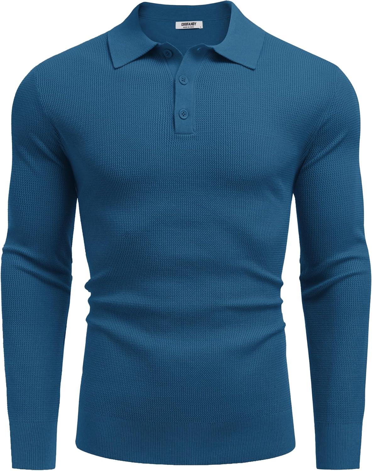 COOFANDY Men’s Knit Polo Long Sleeve Sweaters Collared Polo Sweater Casual Dress Pullover Fashion Golf Sweaters(Deep Blue)
