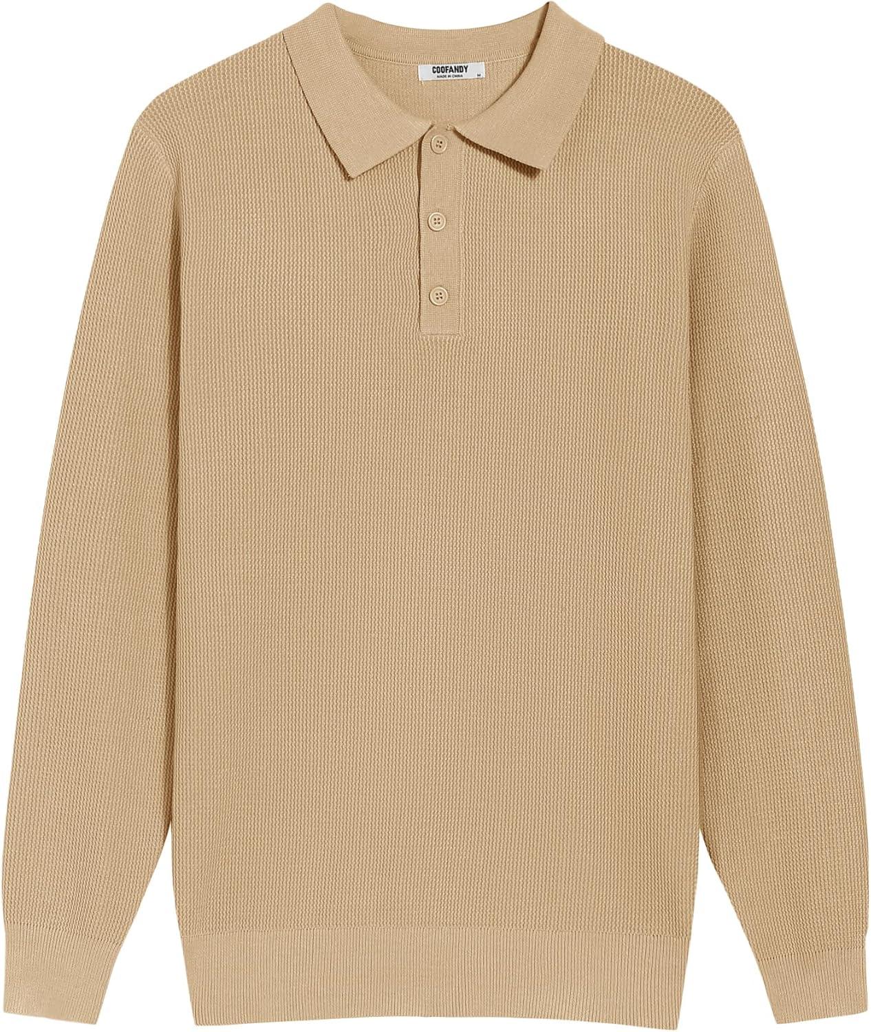 COOFANDY Men’s Knit Polo Long Sleeve Sweaters Collared Polo Sweater Casual Dress Pullover Fashion Golf Sweaters(Khaki)