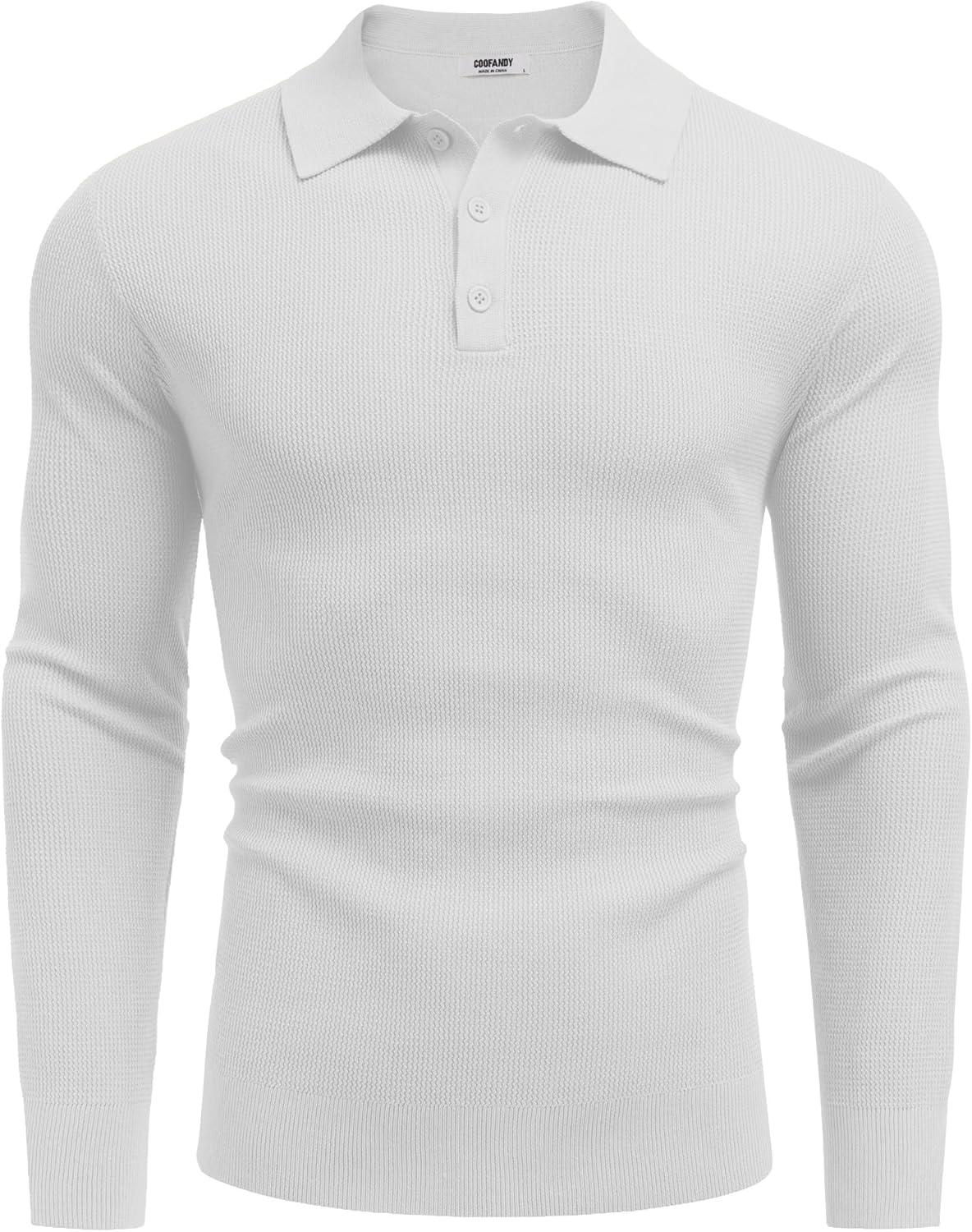 COOFANDY Men’s Knit Polo Long Sleeve Sweaters Collared Polo Sweater Casual Dress Pullover Fashion Golf Sweaters(White)