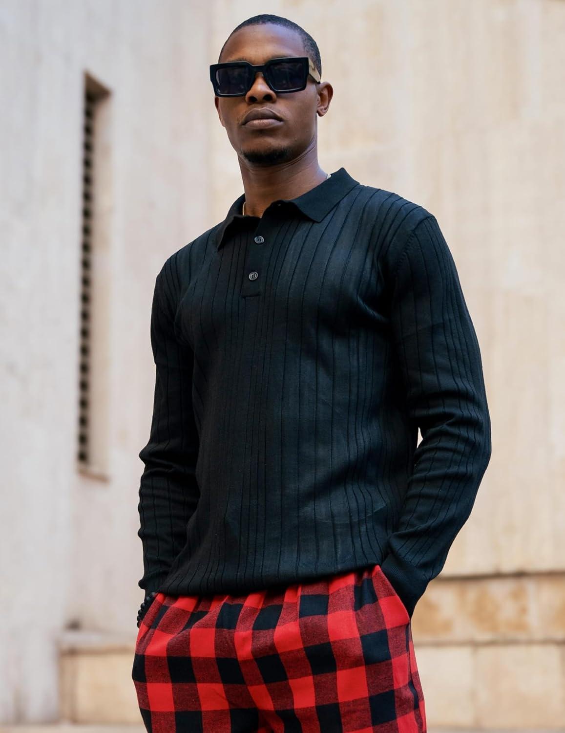 COOFANDY Mens Knit Polo Shirts Casual Long Sleeve Polo Sweater Button Down Collared Golf Shirts Black