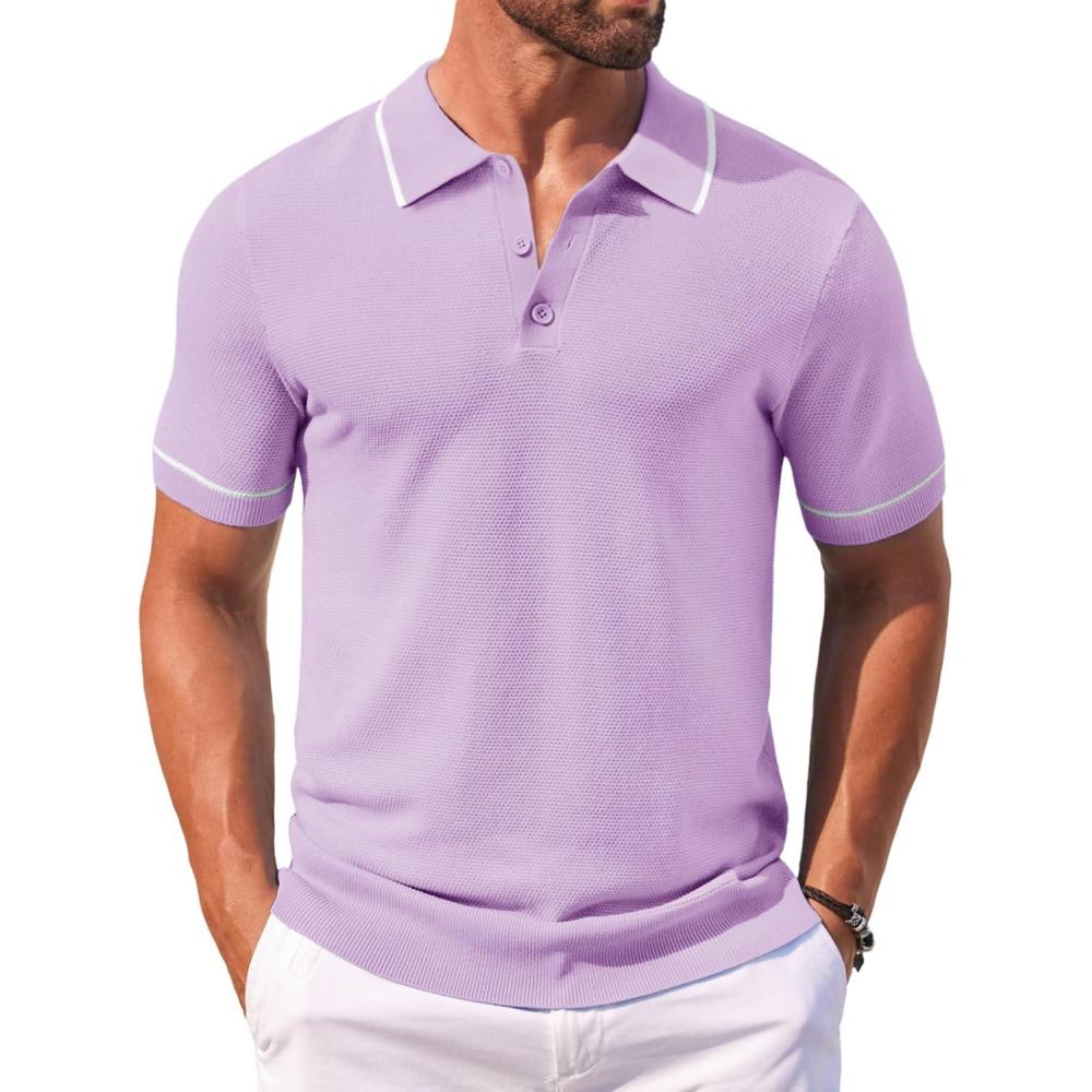 COOFANDY Men’s Knit Polo Shirts Casual Short Sleeve Button Down Shirts Crochet Classic Golf Polo Collared Shirts(Light Purple)