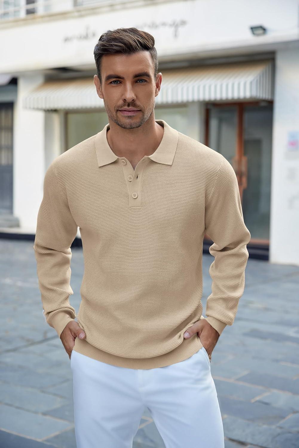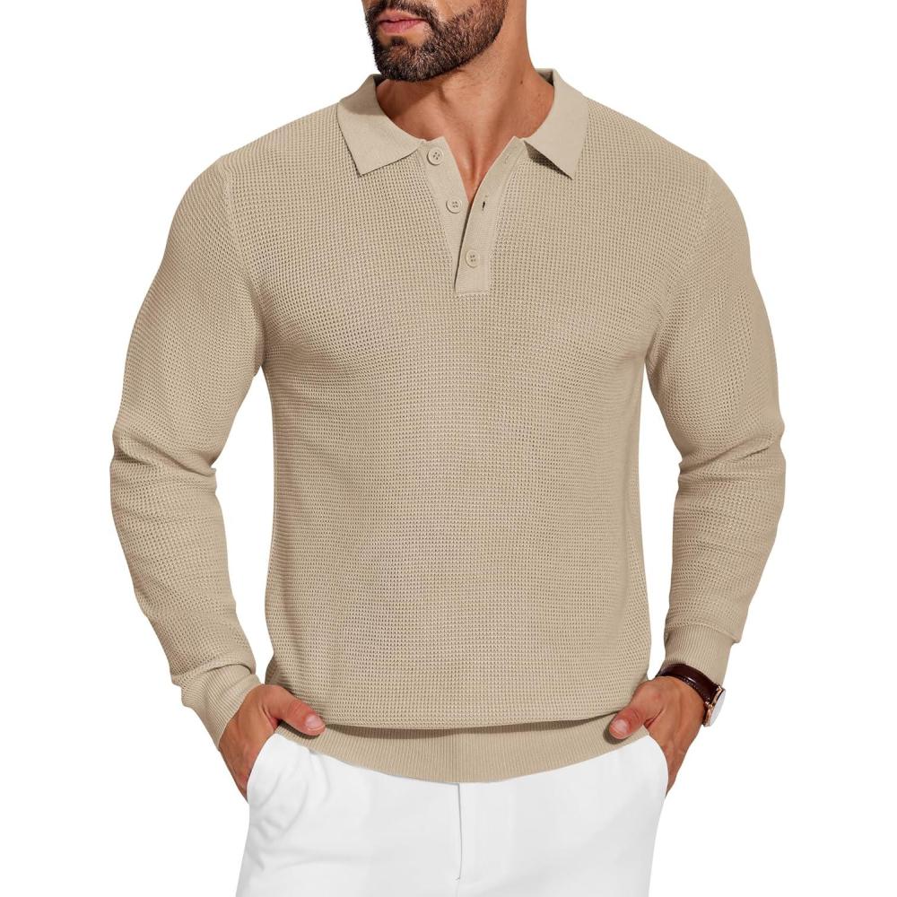 COOFANDY Mens Knit Polo Shirts Long Sleeve Sweater Casual Polo Shirts Lightweight Collared T Shirts(Khaki)
