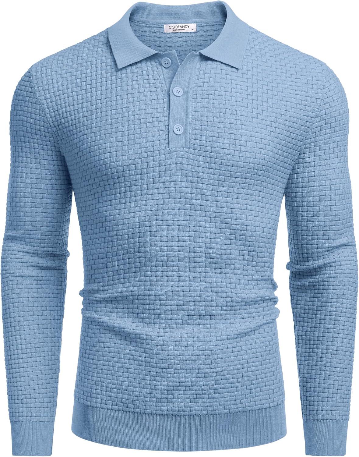 COOFANDY Men's Knit Polo Shirts Long Sleeve Sweater Polo Lightweight Fashion Casual Collared T Shirts