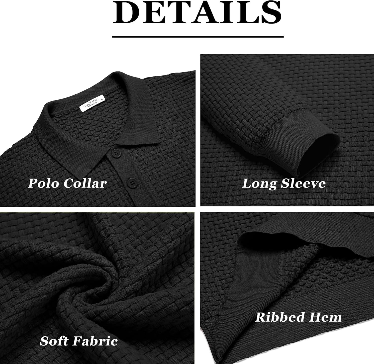 COOFANDY Men’s Knit Polo Shirts Long Sleeve Sweater Polo Lightweight Fashion Casual Collared Shirts(Black)