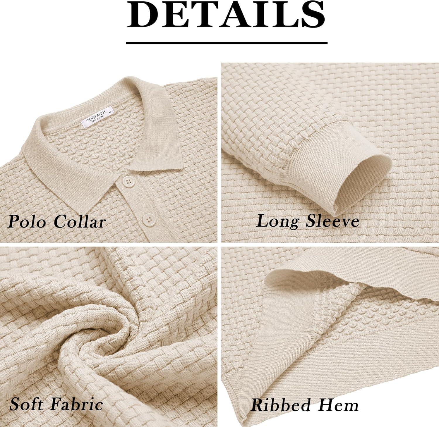 COOFANDY Men's Knit Polo Shirts Long Sleeve Sweater Polo Lightweight Fashion Casual Collared T Shirts