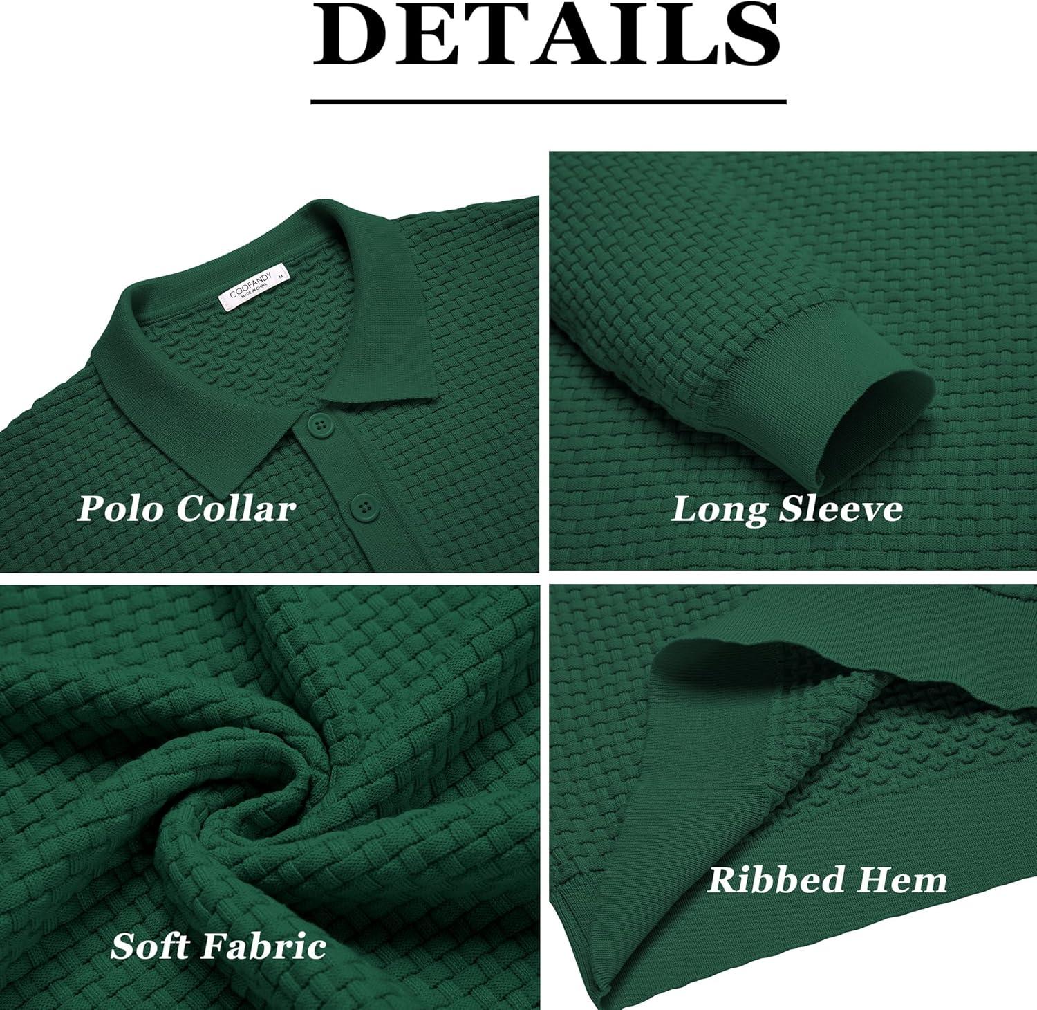 COOFANDY Men's Knit Polo Shirts Long Sleeve Sweater Polo Lightweight Fashion Casual Collared T Shirts