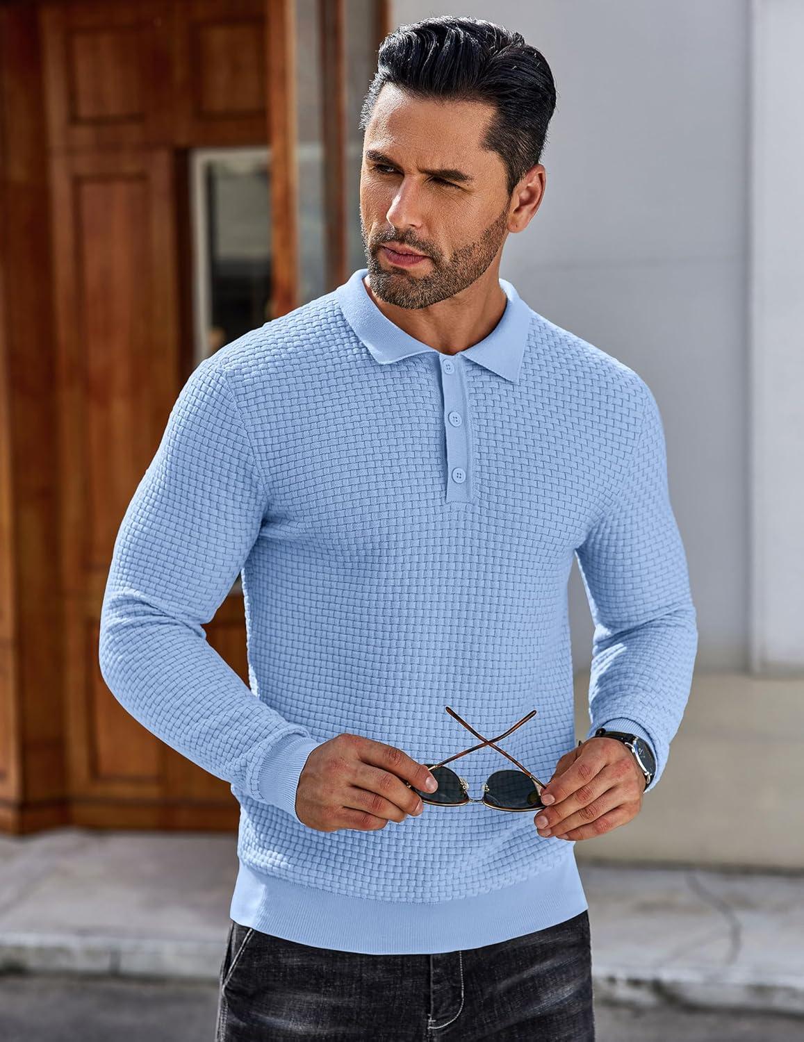 COOFANDY Men's Knit Polo Shirts Long Sleeve Sweater Polo Lightweight Fashion Casual Collared T Shirts