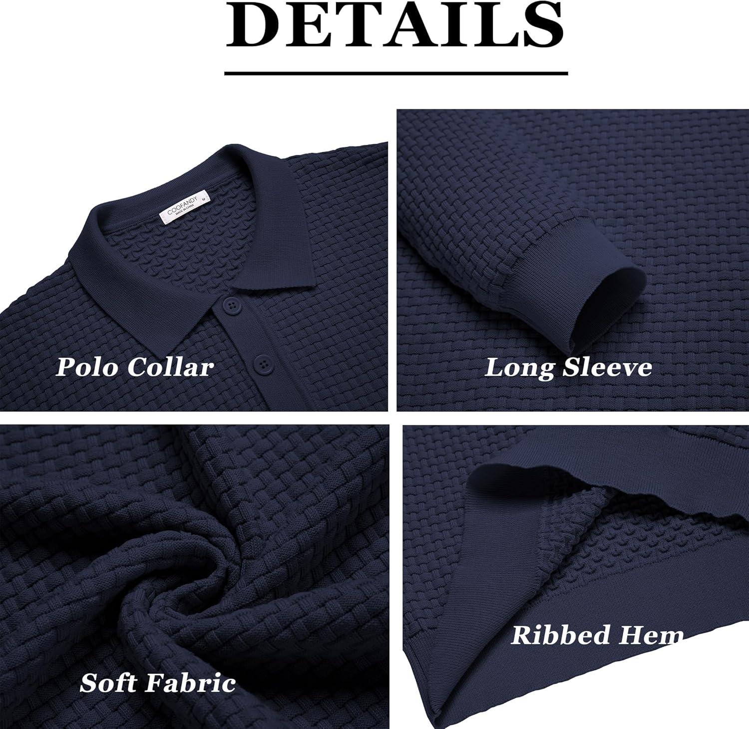COOFANDY Men's Knit Polo Shirts Long Sleeve Sweater Polo Lightweight Fashion Casual Collared T Shirts