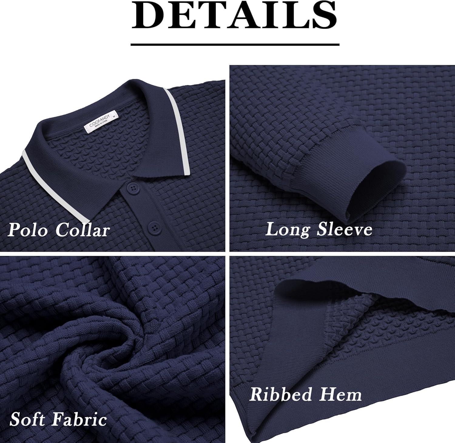 COOFANDY Men's Knit Polo Shirts Long Sleeve Sweater Polo Lightweight Fashion Casual Collared T Shirts