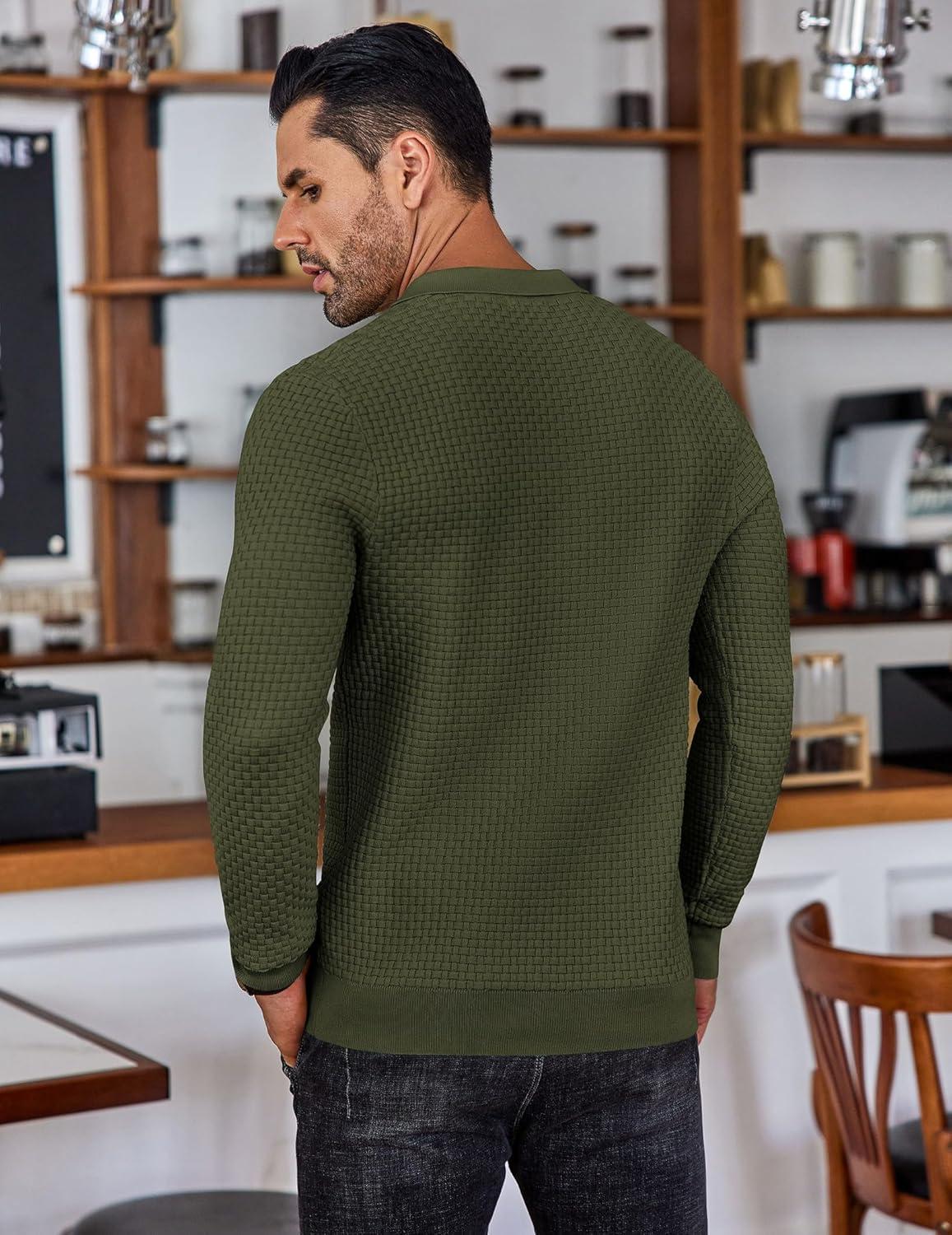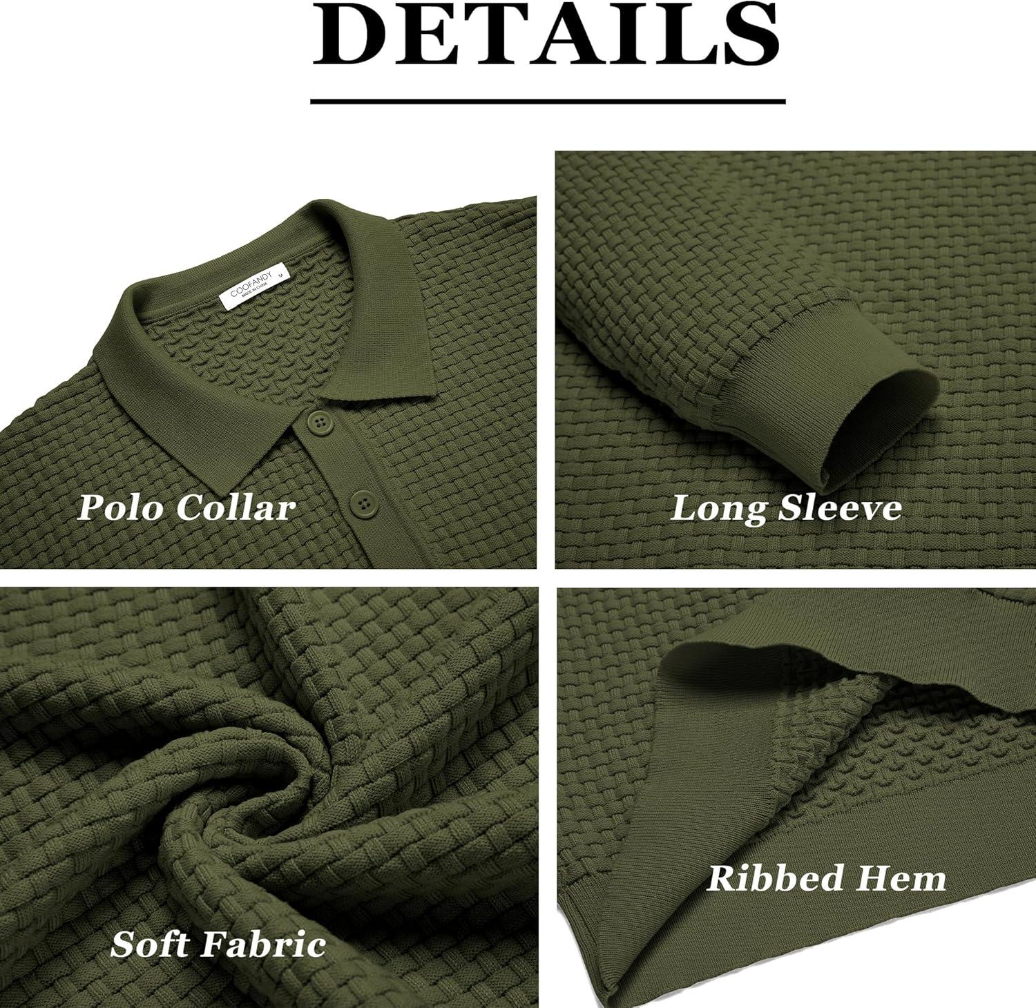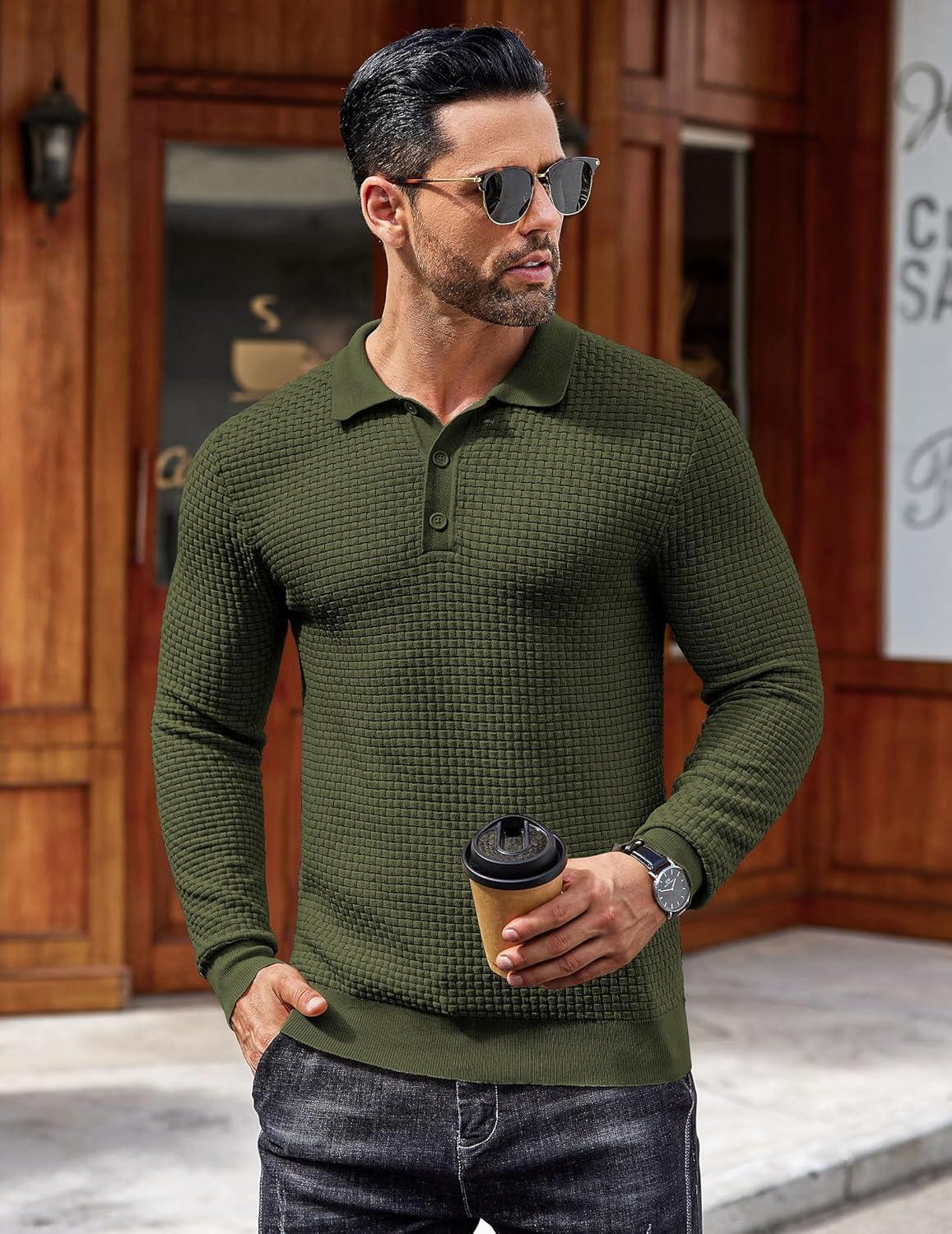 COOFANDY Men’s Knit Polo Shirts Long Sleeve Sweater Polo Lightweight Fashion Casual Collared T Shirts Army Green