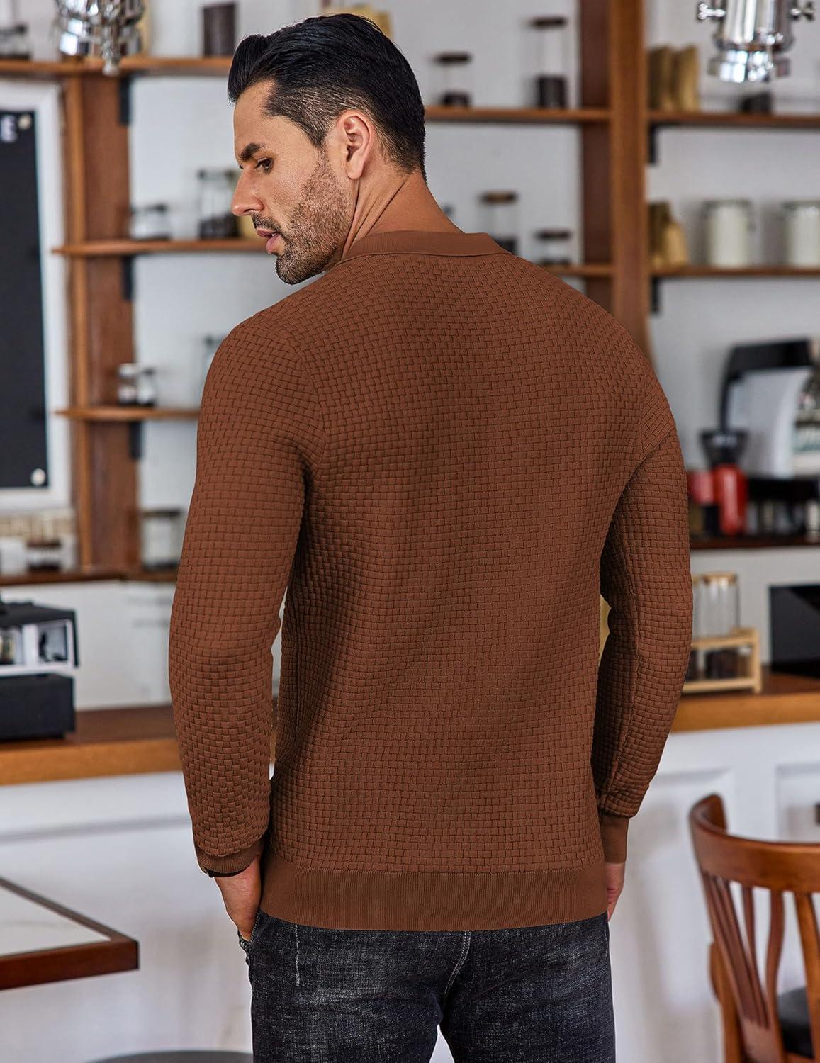 COOFANDY Men’s Knit Polo Shirts Long Sleeve Sweater Polo Lightweight Fashion Casual Collared T Shirts(Caramel)