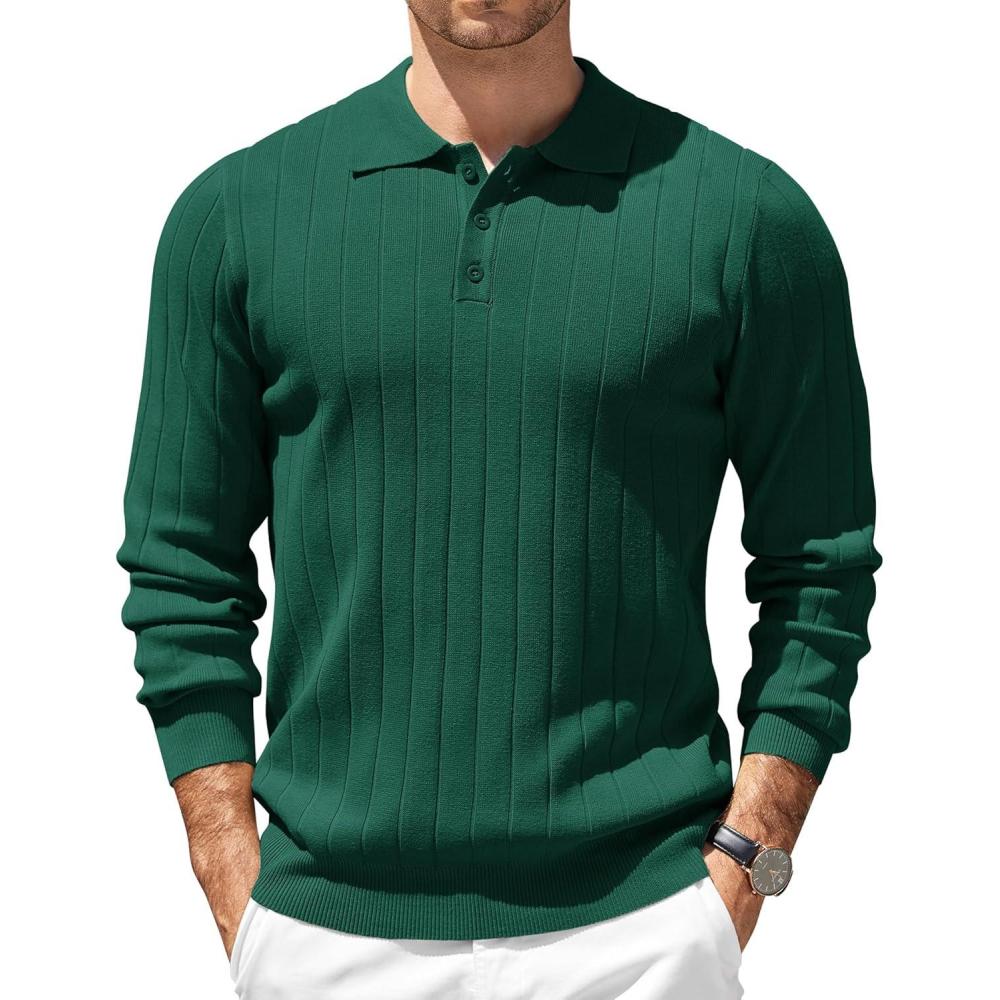 COOFANDY Mens Knit Polo Sweater Long Sleeve Polos Lightweight Casual Dress Pullover Sweaters(Dark Green)