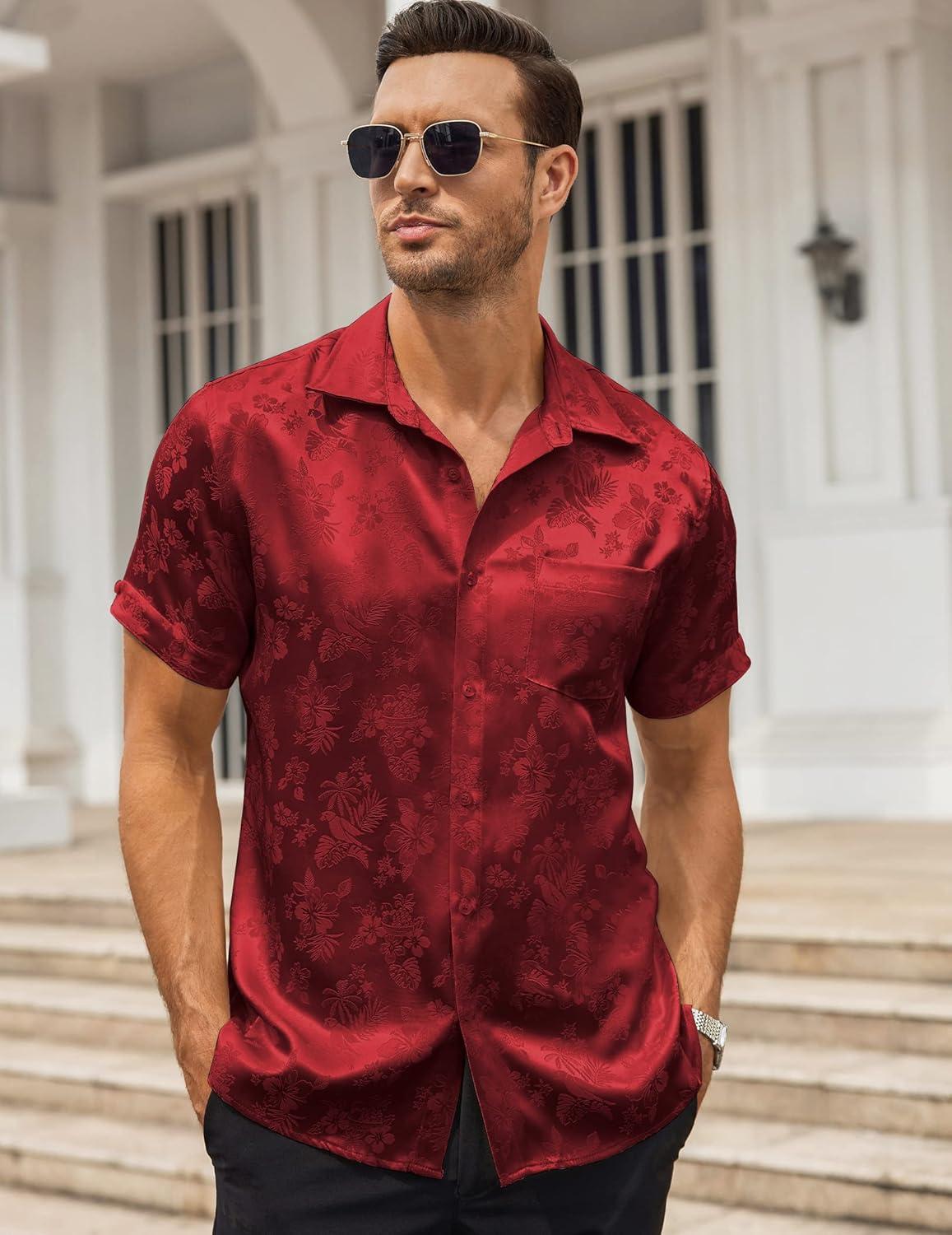 COOFANDY Men’s Knit Shirts Short Sleeve Button Down Polo Shirt Fashion Casual Summer Beach Shirts(01 Red)