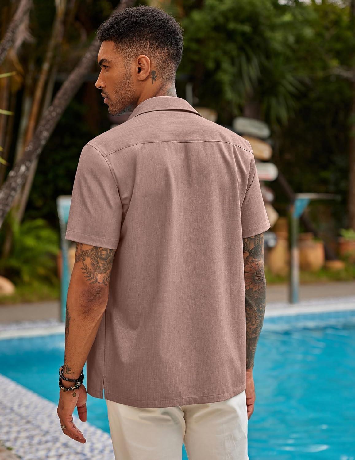 COOFANDY Men’s Knit Shirts Short Sleeve Button Down Polo Shirt Fashion Casual Summer Beach Shirts(Deep Pink)