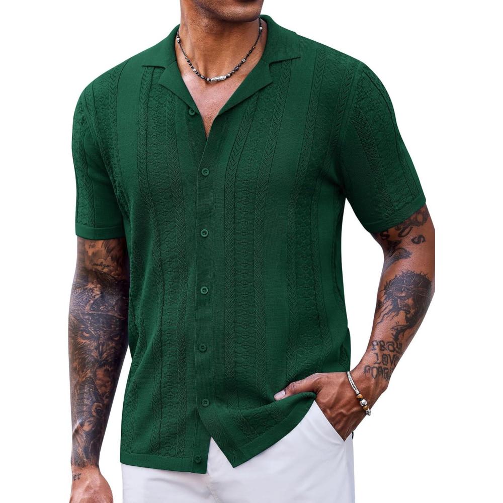 COOFANDY Men’s Knit Shirts Vintage Short Sleeve Button Down Shirt Casual Summer Beach Shirt(Green)