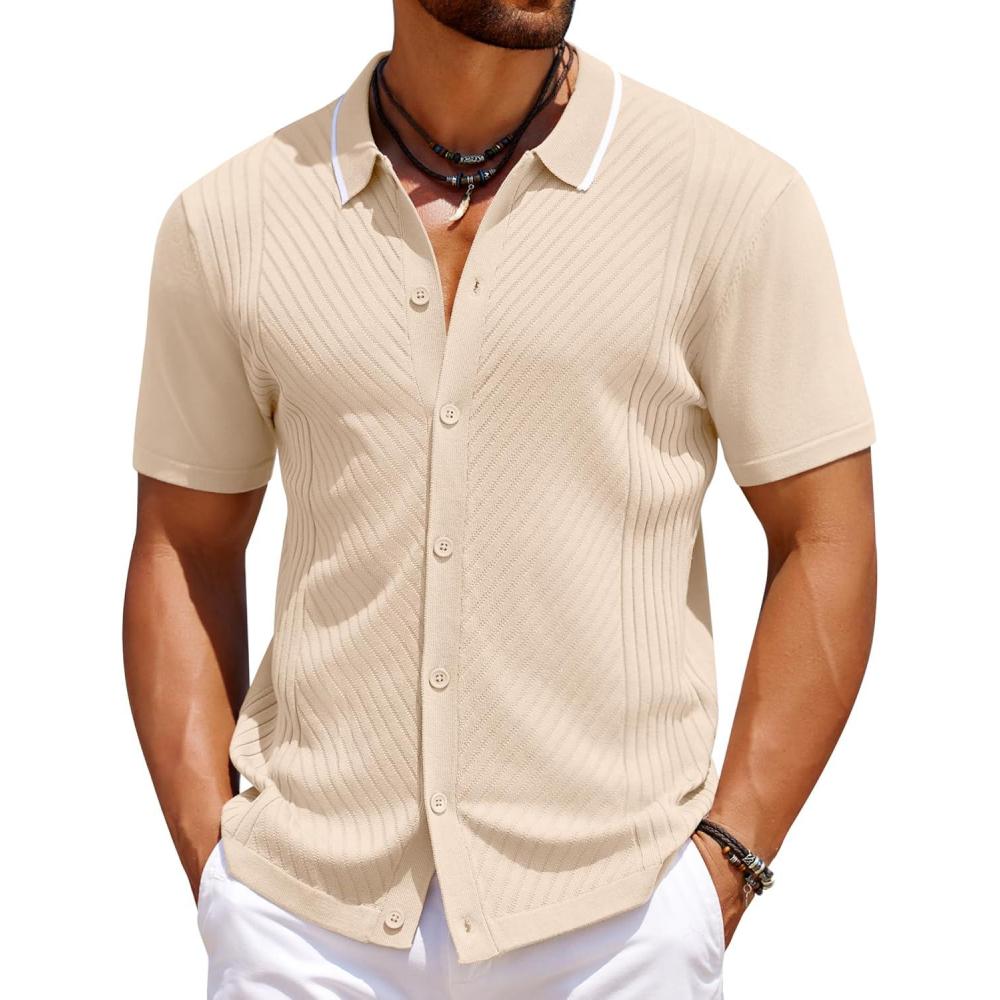 COOFANDY Men’s Knit Short Sleeve Button Down Shirt Vintage Polo Shirt Casual Summer Beach Shirts(Wood Ash)