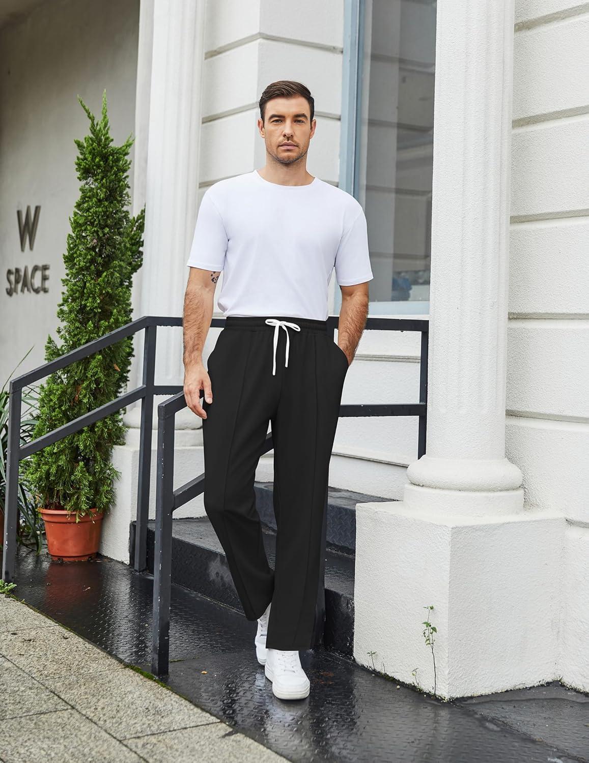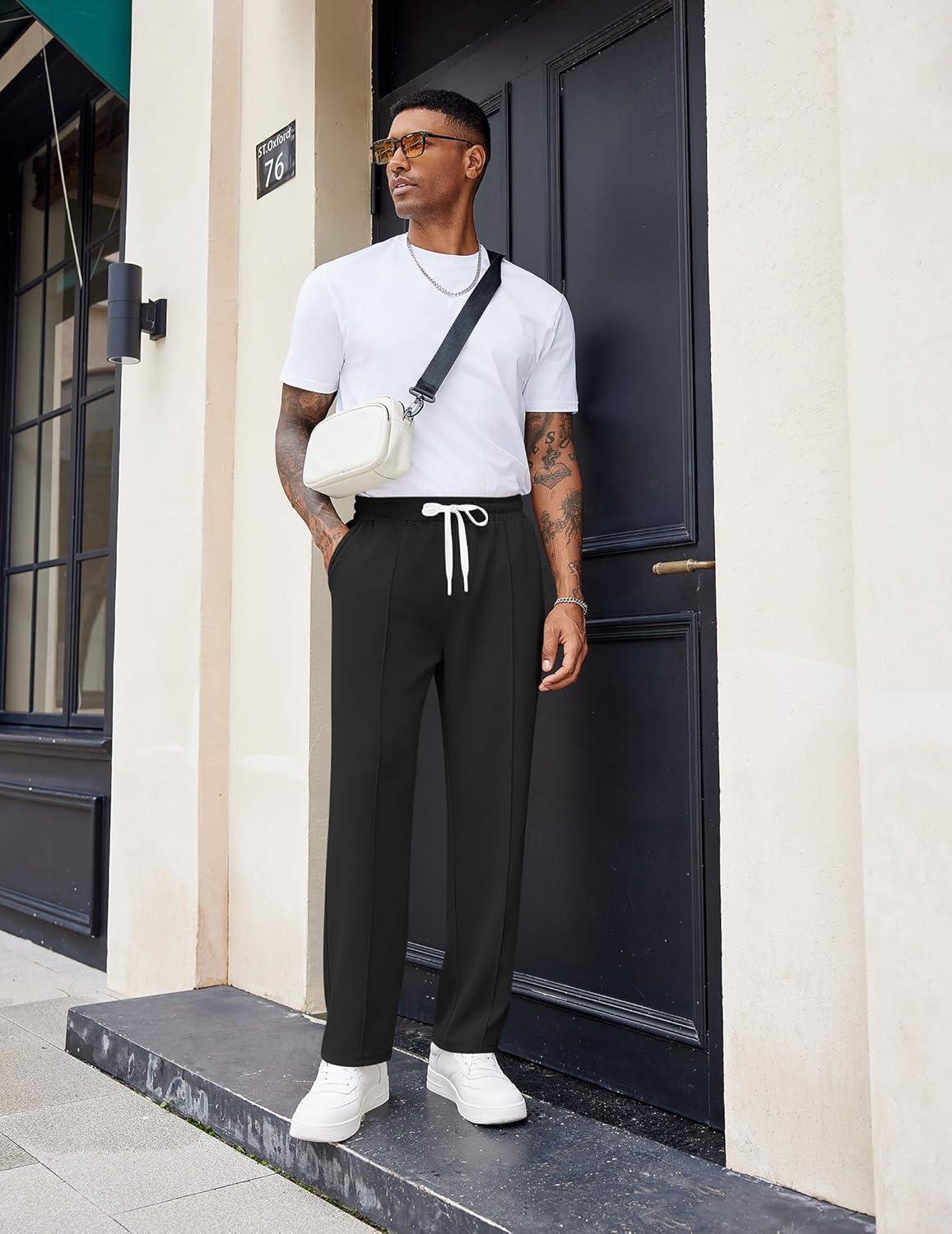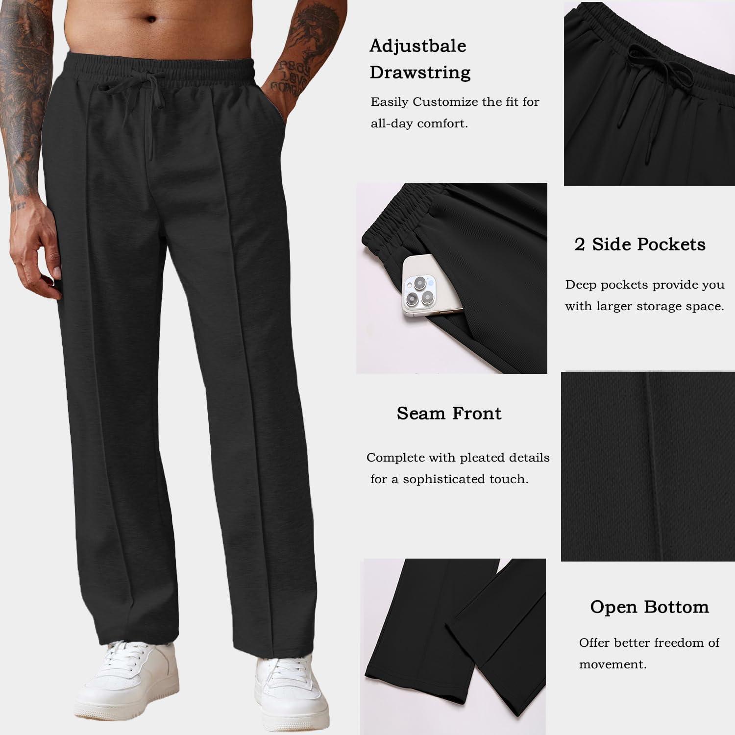 COOFANDY Men’s Knit Sweatpants Lightweight Open Bottom Casual Pants Drawstring Jogger Yoga Pants with Pockets(Black)