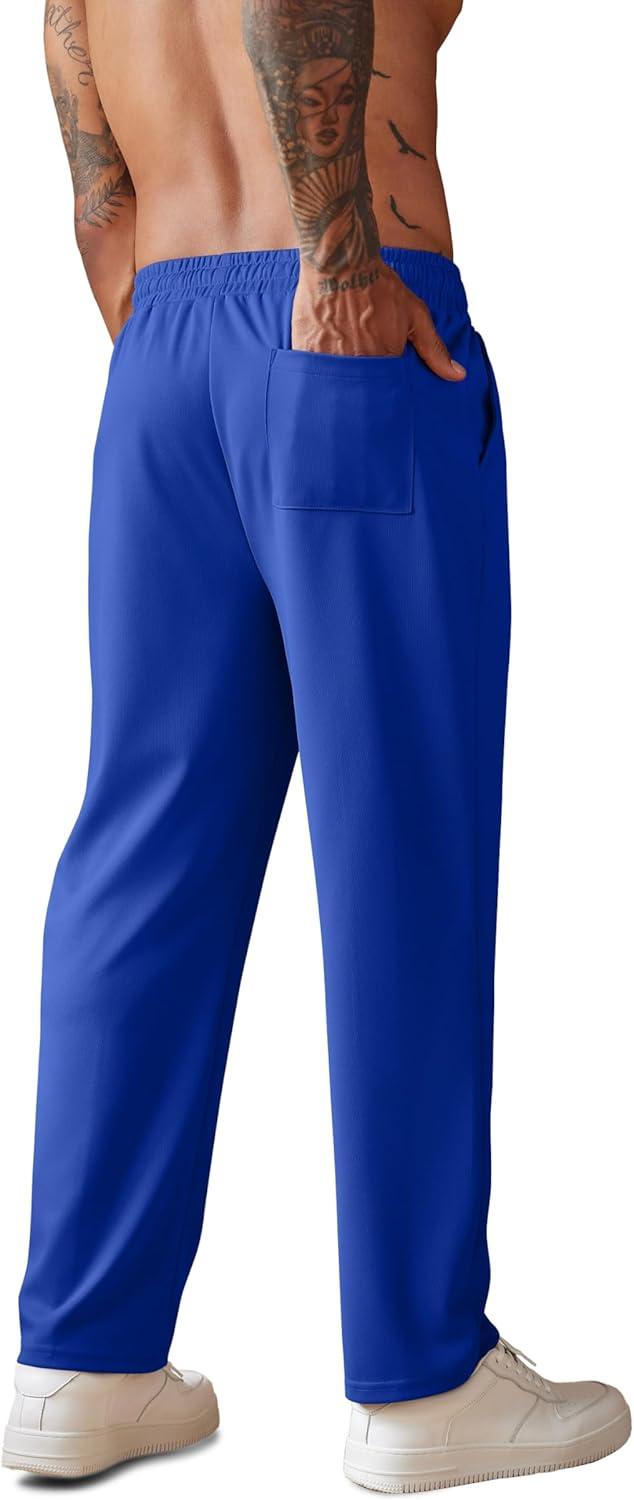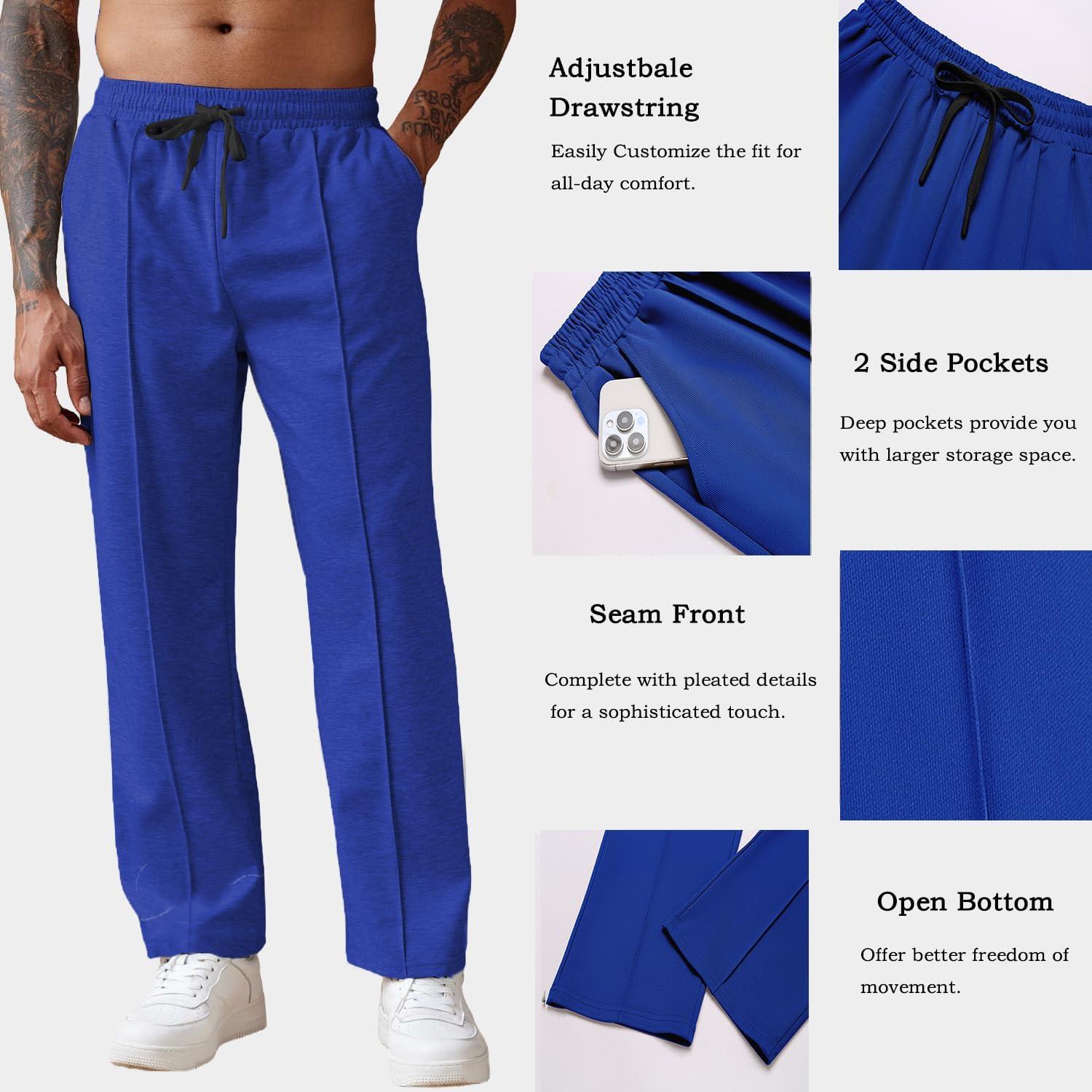 COOFANDY Men’s Knit Sweatpants Lightweight Open Bottom Casual Pants Drawstring Jogger Yoga Pants with Pockets(Blue)