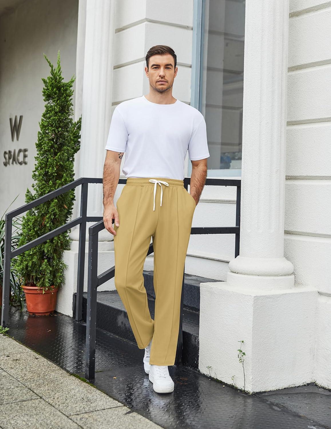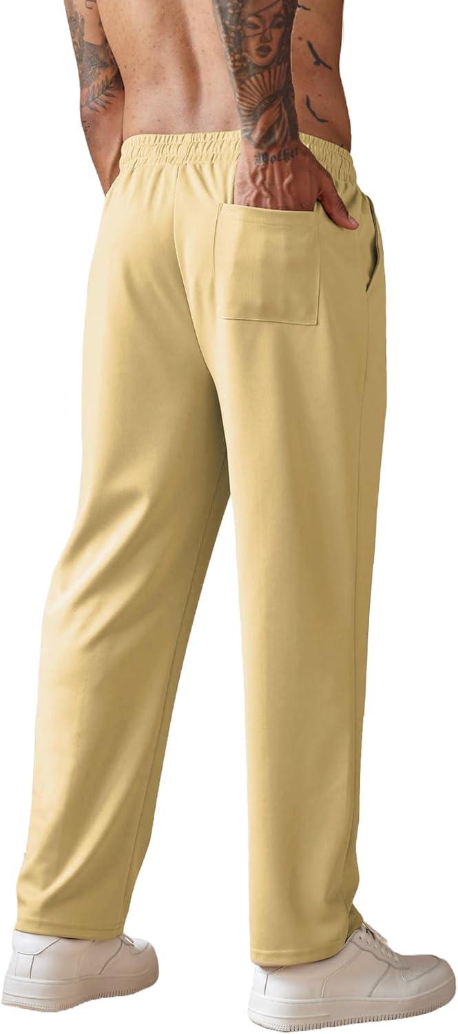 COOFANDY Men’s Knit Sweatpants Lightweight Open Bottom Casual Pants Drawstring Jogger Yoga Pants with Pockets(Light Khaki)