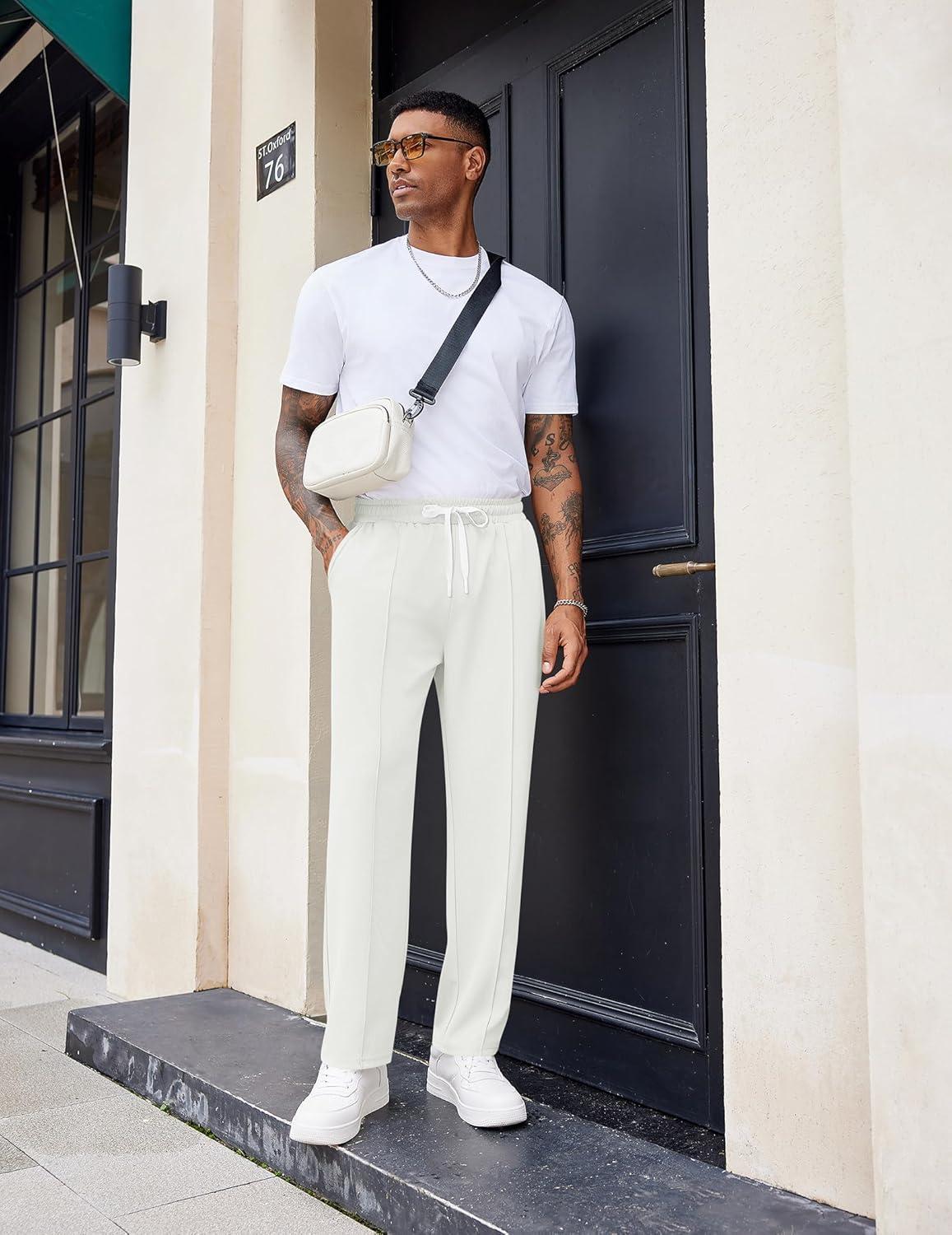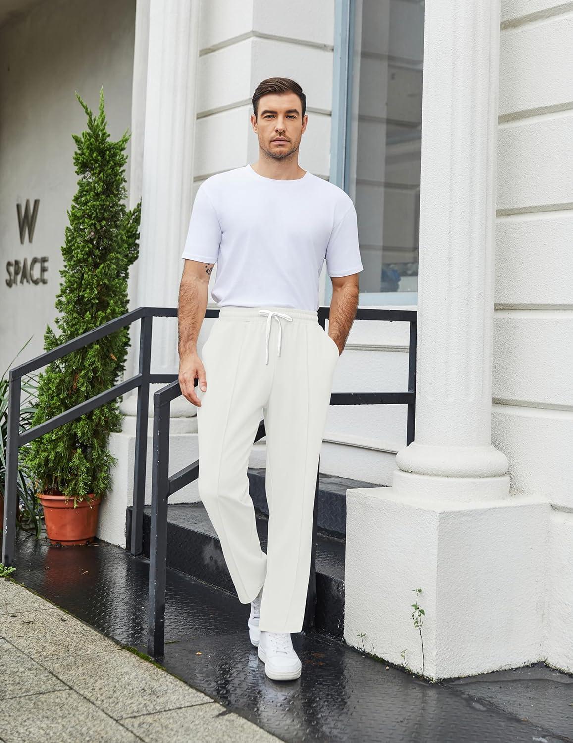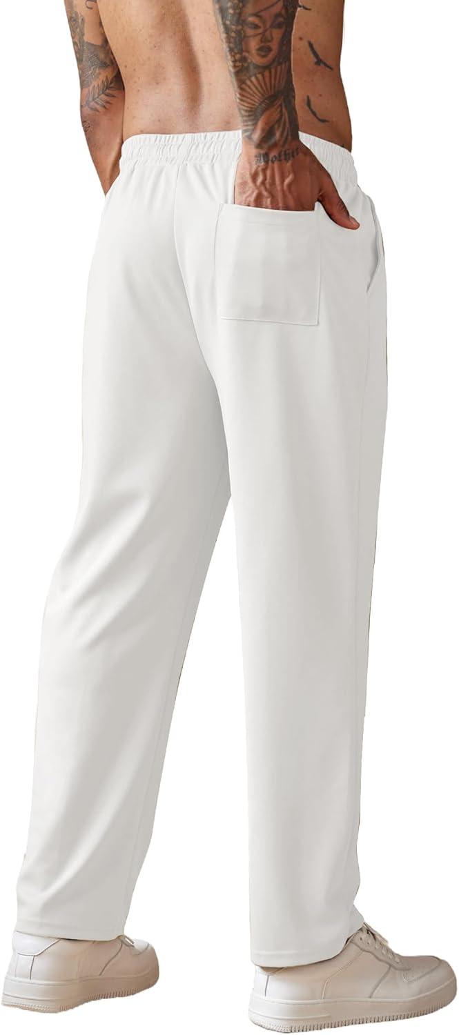 COOFANDY Men’s Knit Sweatpants Lightweight Open Bottom Casual Pants Drawstring Jogger Yoga Pants with Pockets(White)