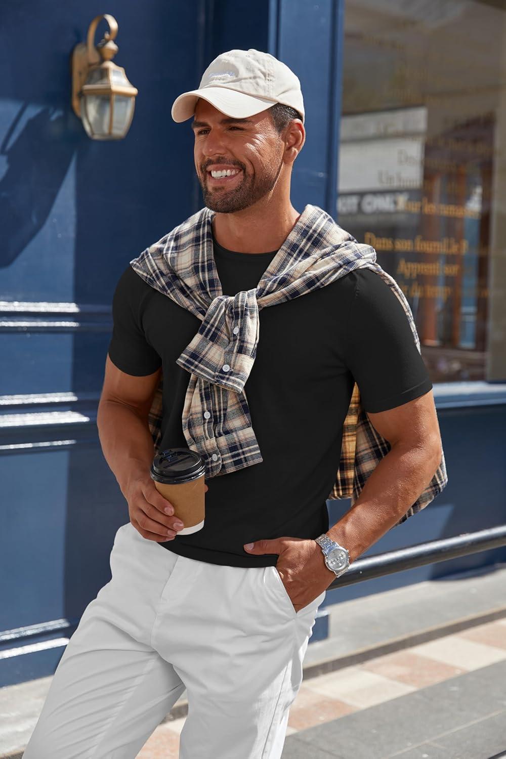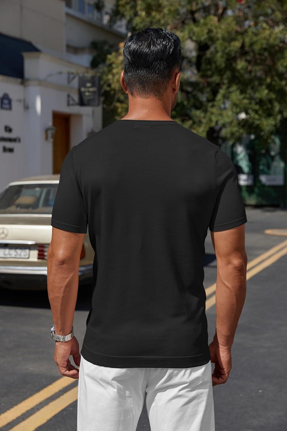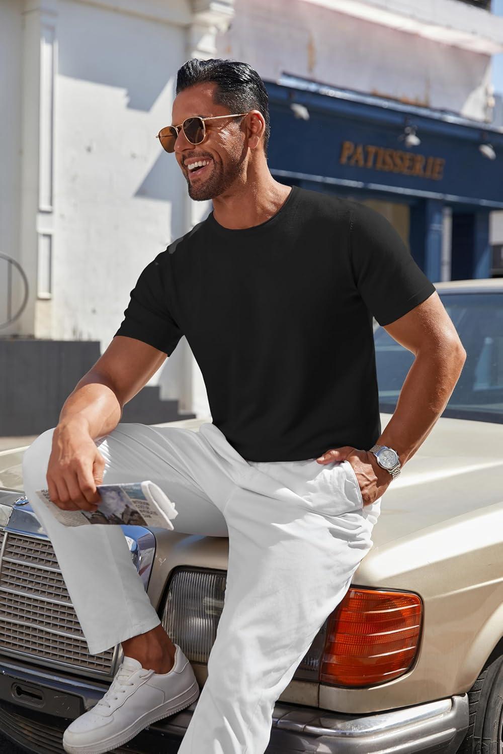 COOFANDY Mens Knit T-Shirts Casual Crewneck Short Sleeve Shirts Summer Tops Basic Pullover Tees(All Black)