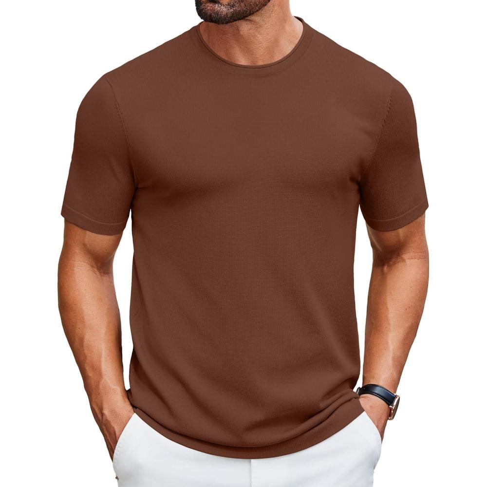 COOFANDY Mens Knit T-Shirts Casual Crewneck Short Sleeve Shirts Summer Tops Basic Pullover Tees(Brown)