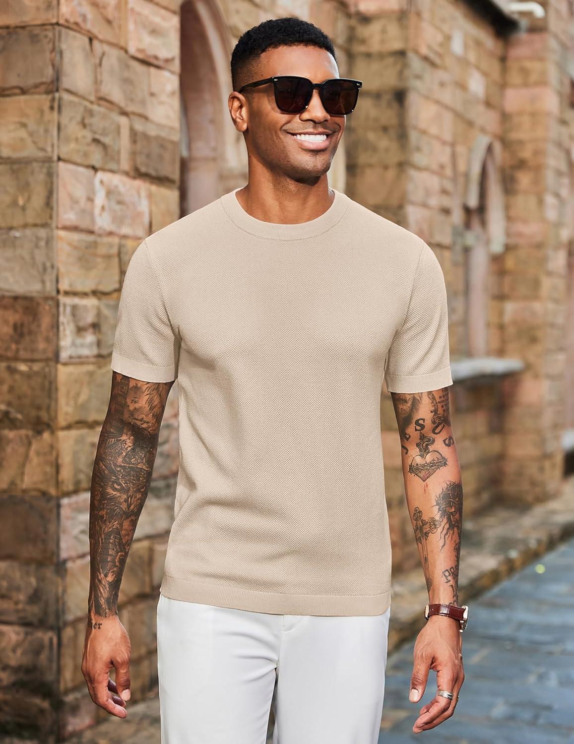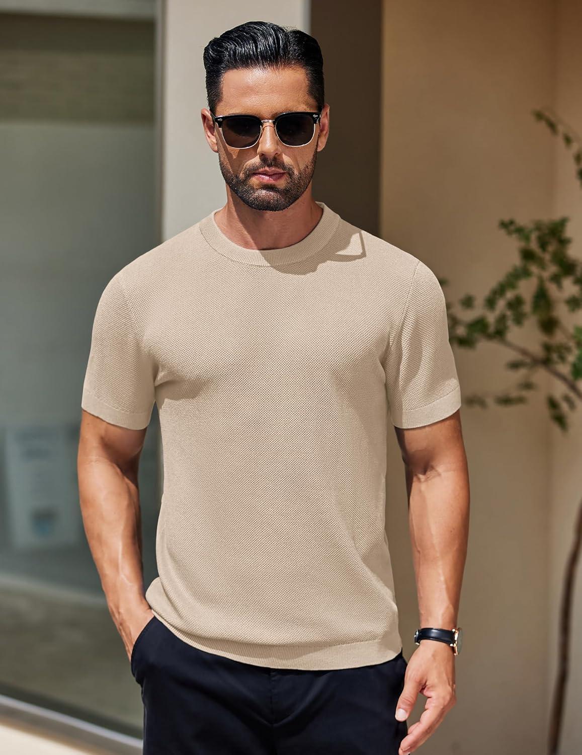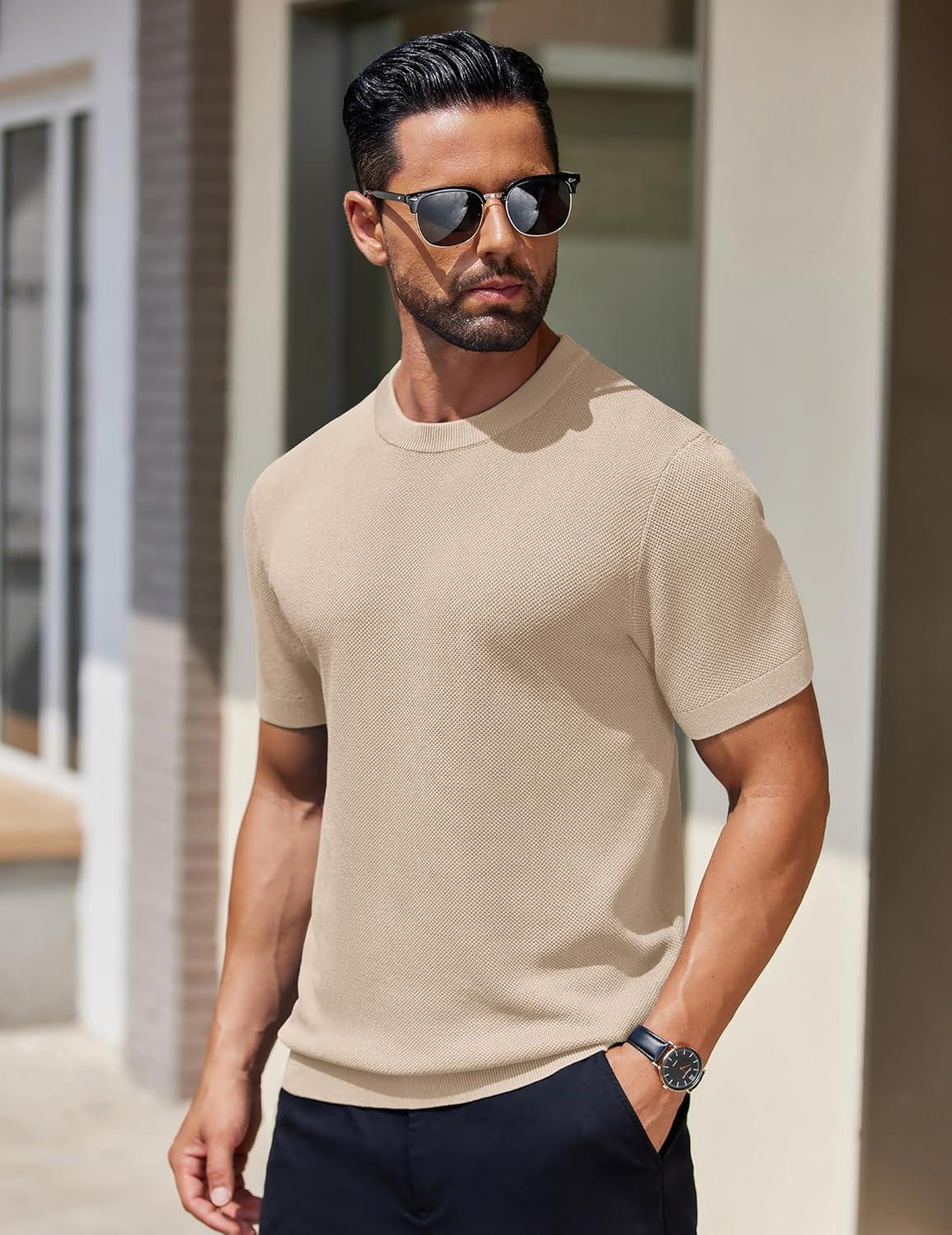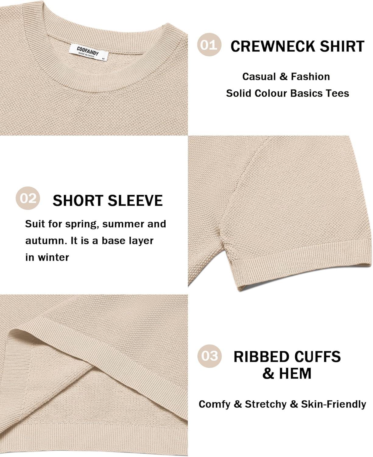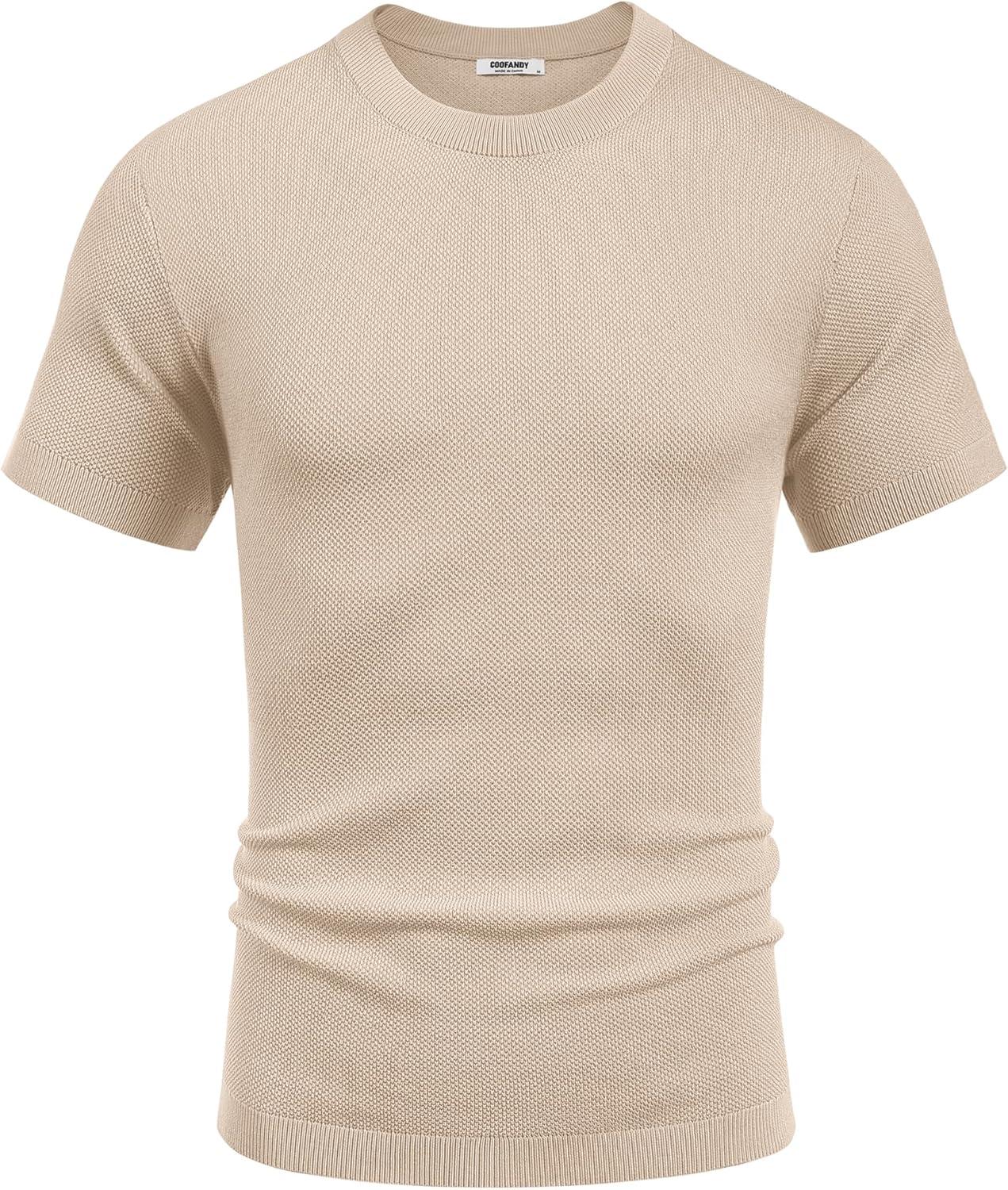 COOFANDY Men’s Knit T-Shirts Short Sleeve Crewneck Shirt Casual Textured Pullover Tees(Apricot)