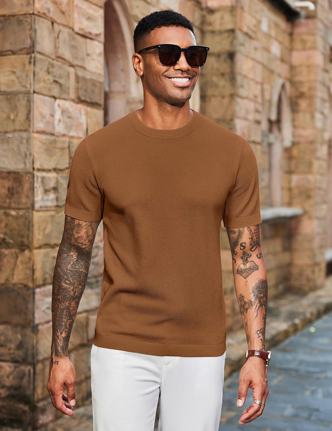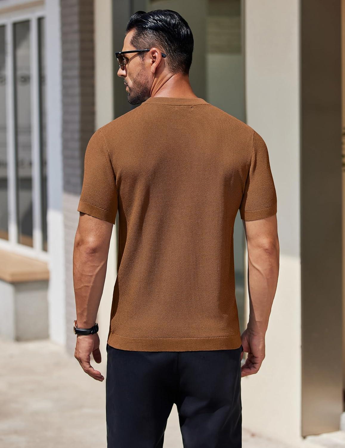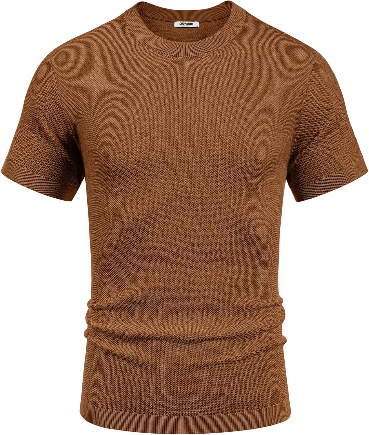 COOFANDY Men’s Knit T-Shirts Short Sleeve Crewneck Shirt Casual Textured Pullover Tees(Brown)