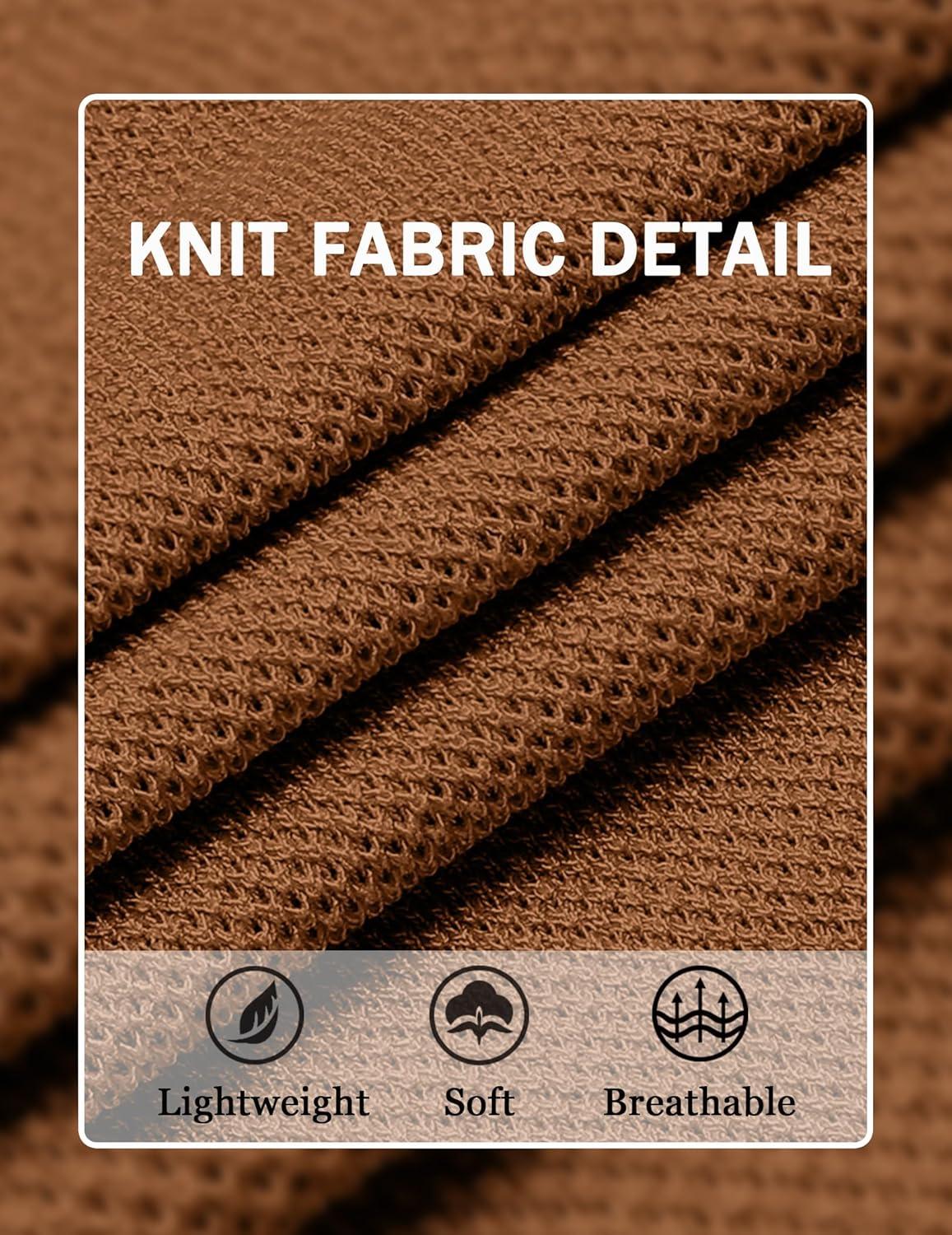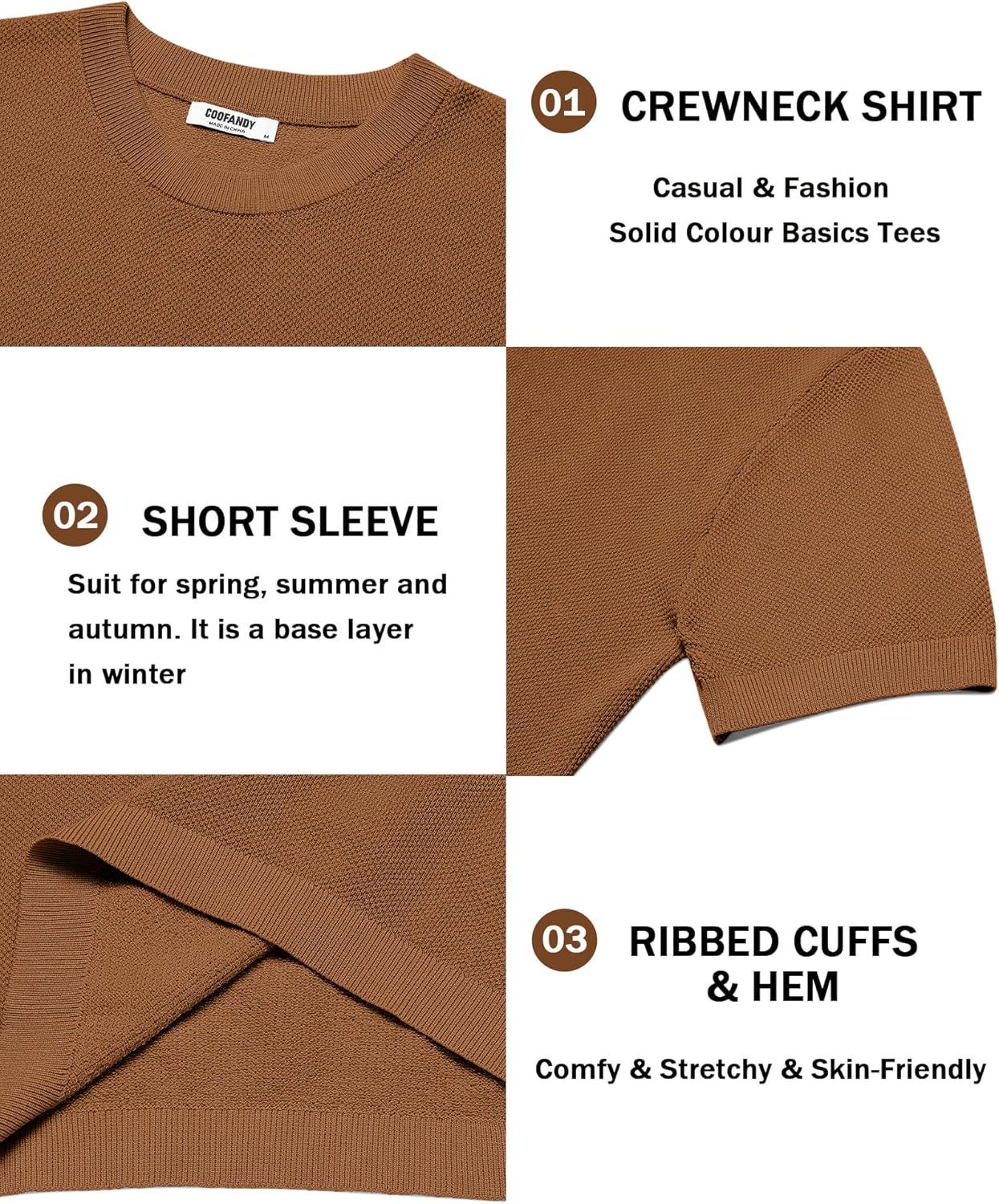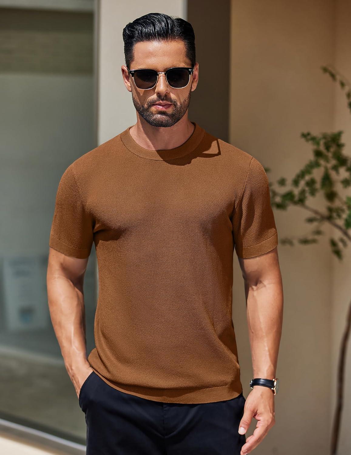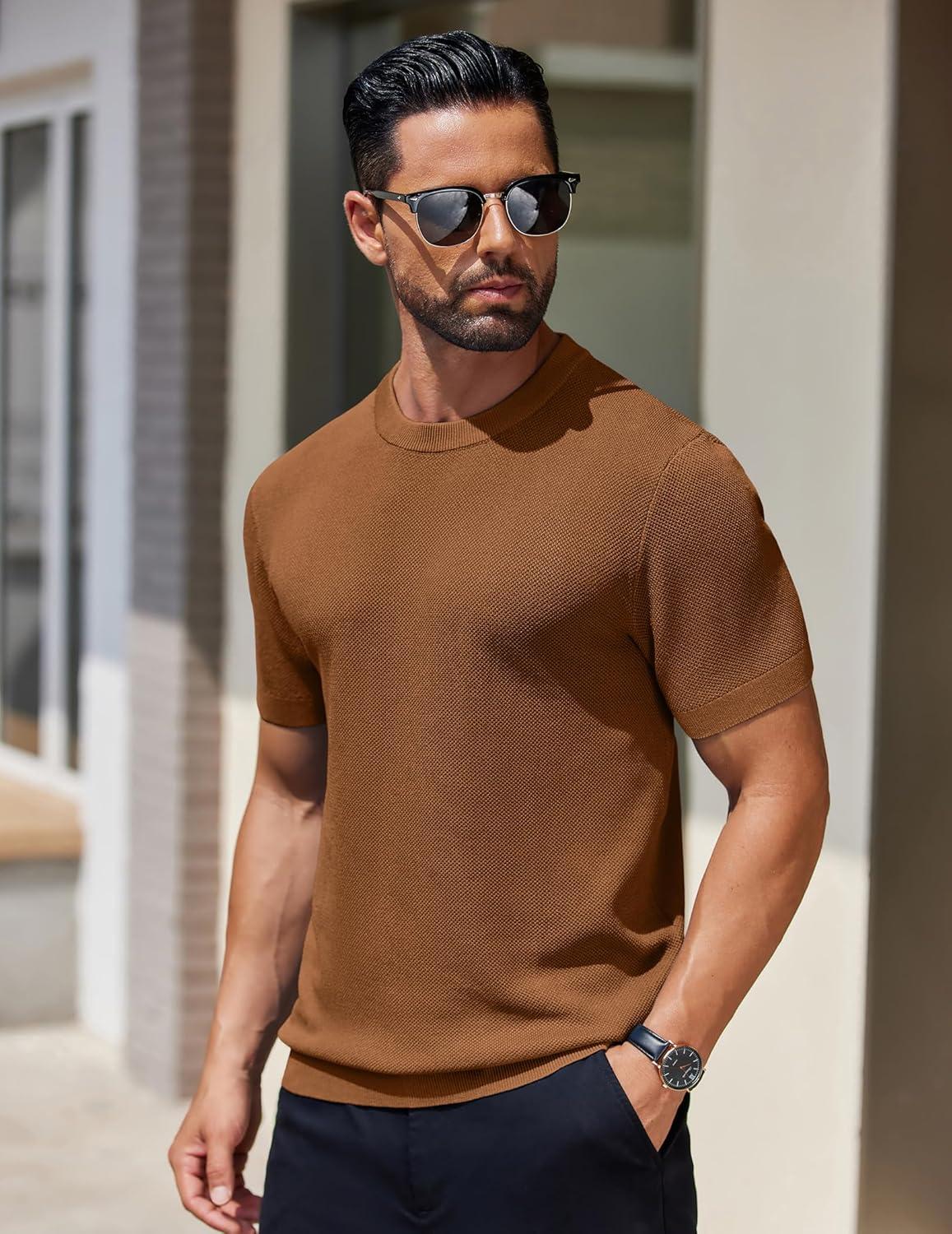 COOFANDY Men’s Knit T-Shirts Short Sleeve Crewneck Shirt Casual Textured Pullover Tees(Brown)