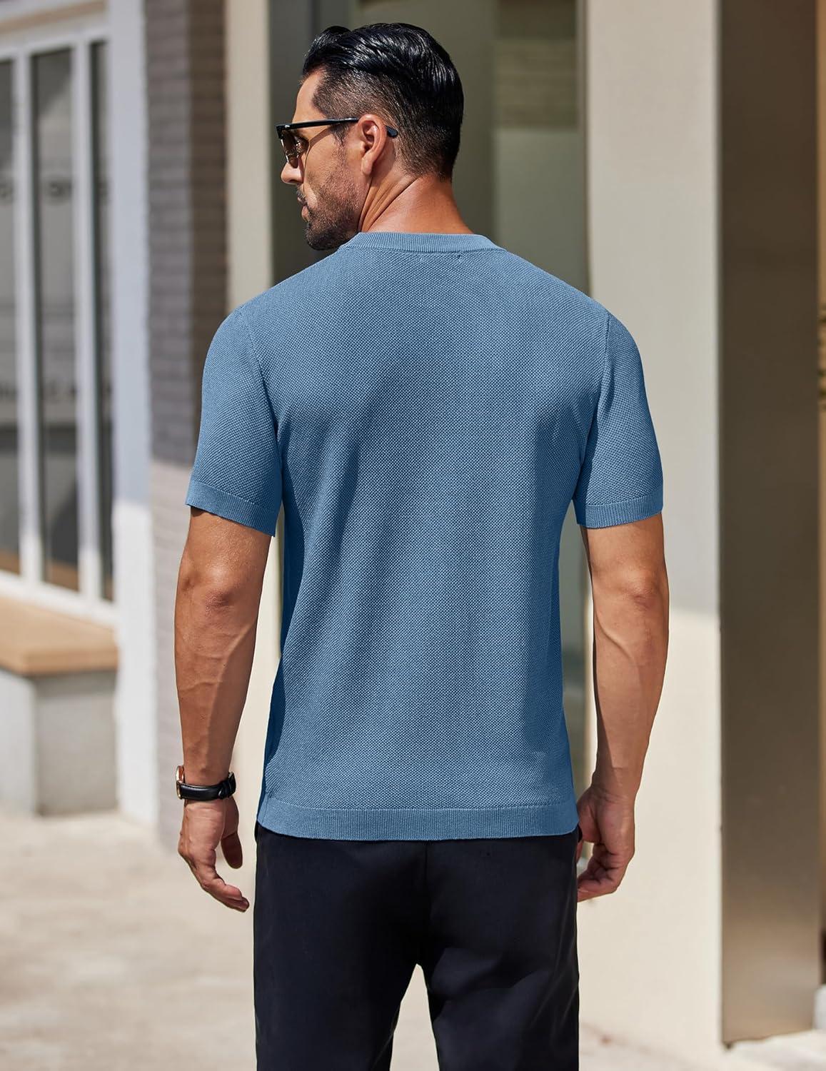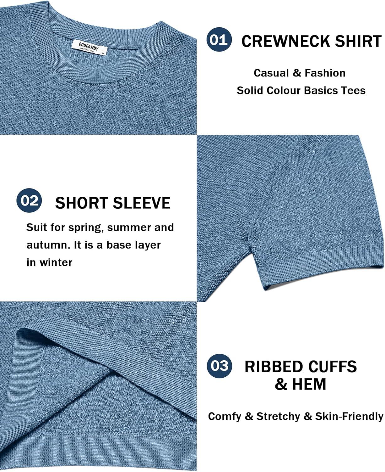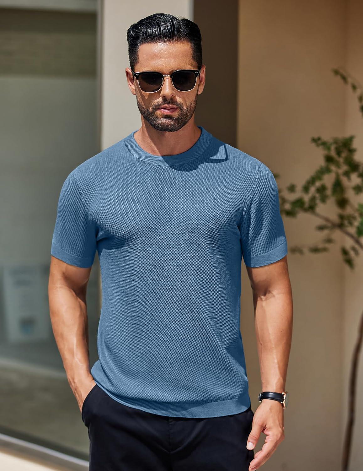 COOFANDY Men’s Knit T-Shirts Short Sleeve Crewneck Shirt Casual Textured Pullover Tees(Gray Blue)