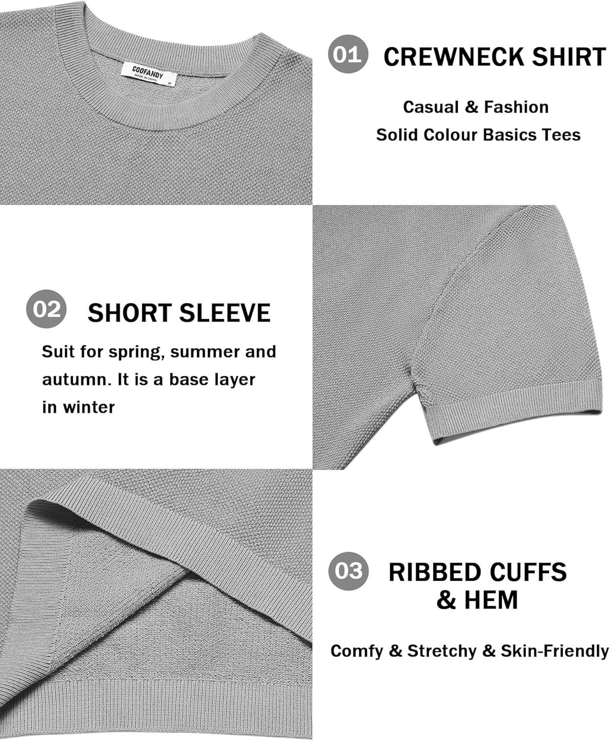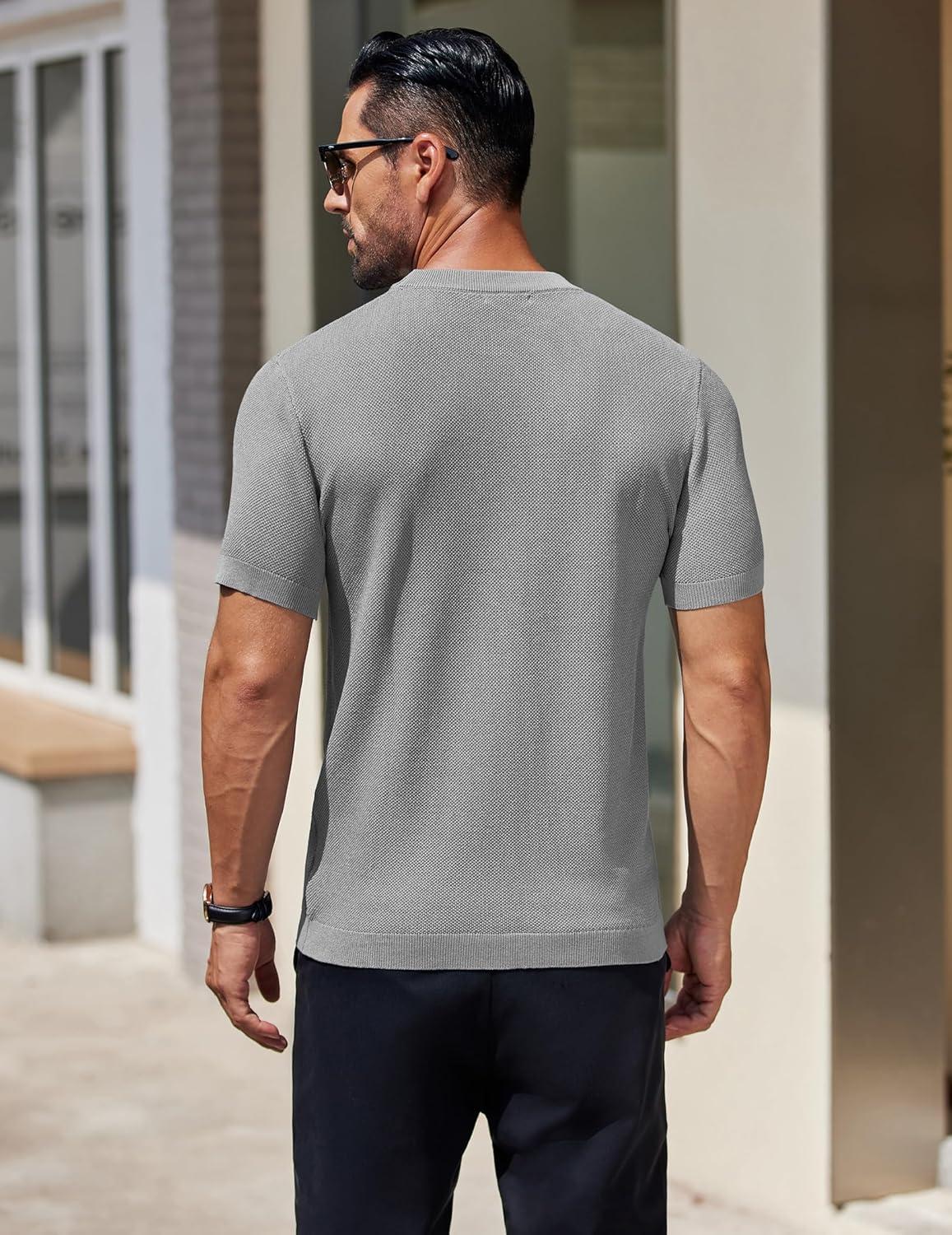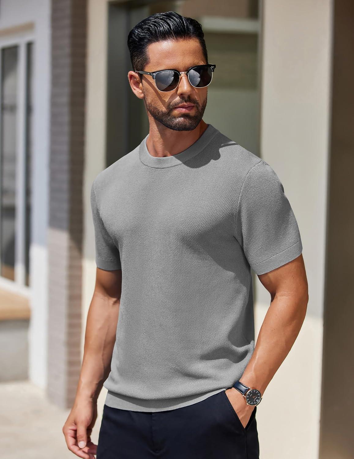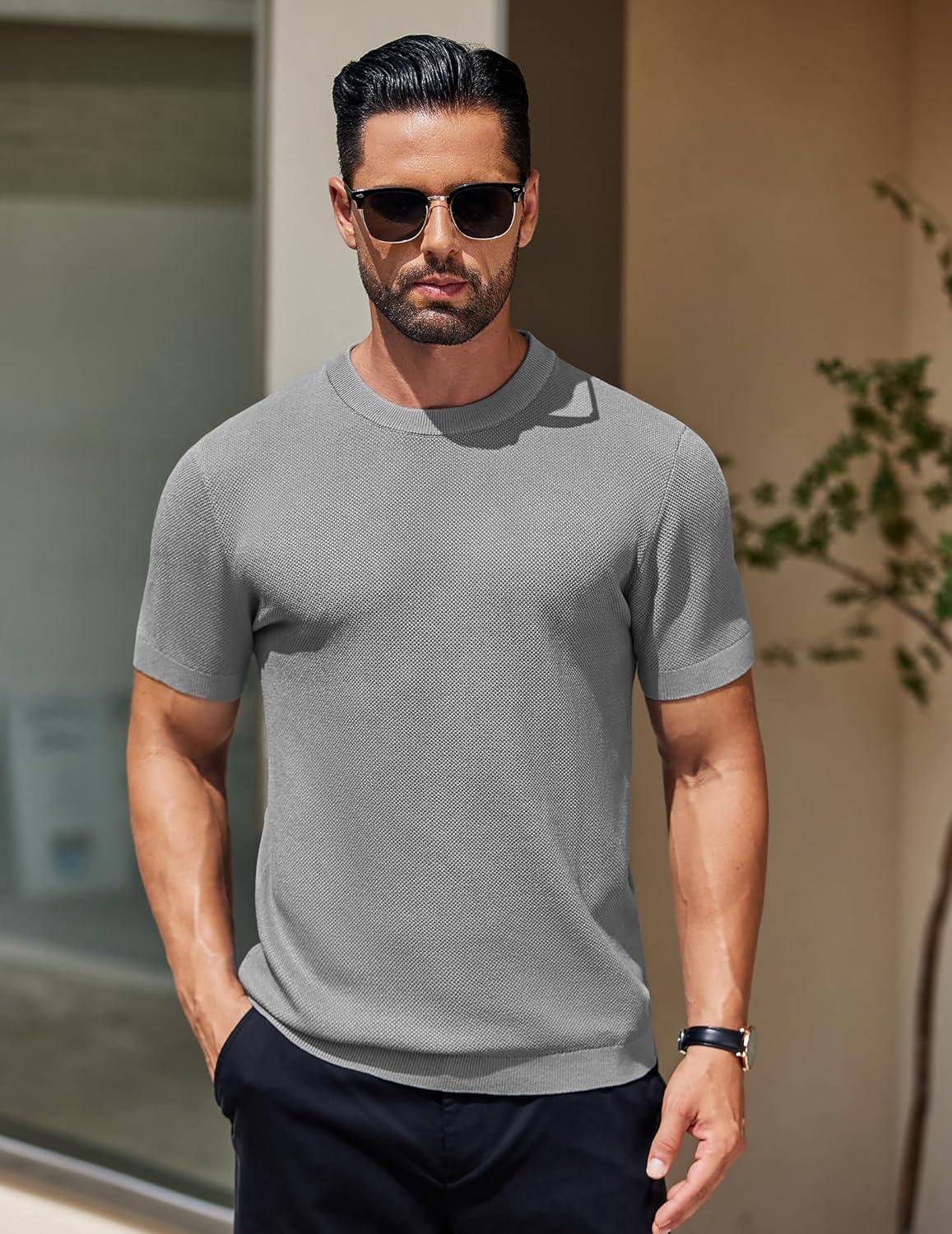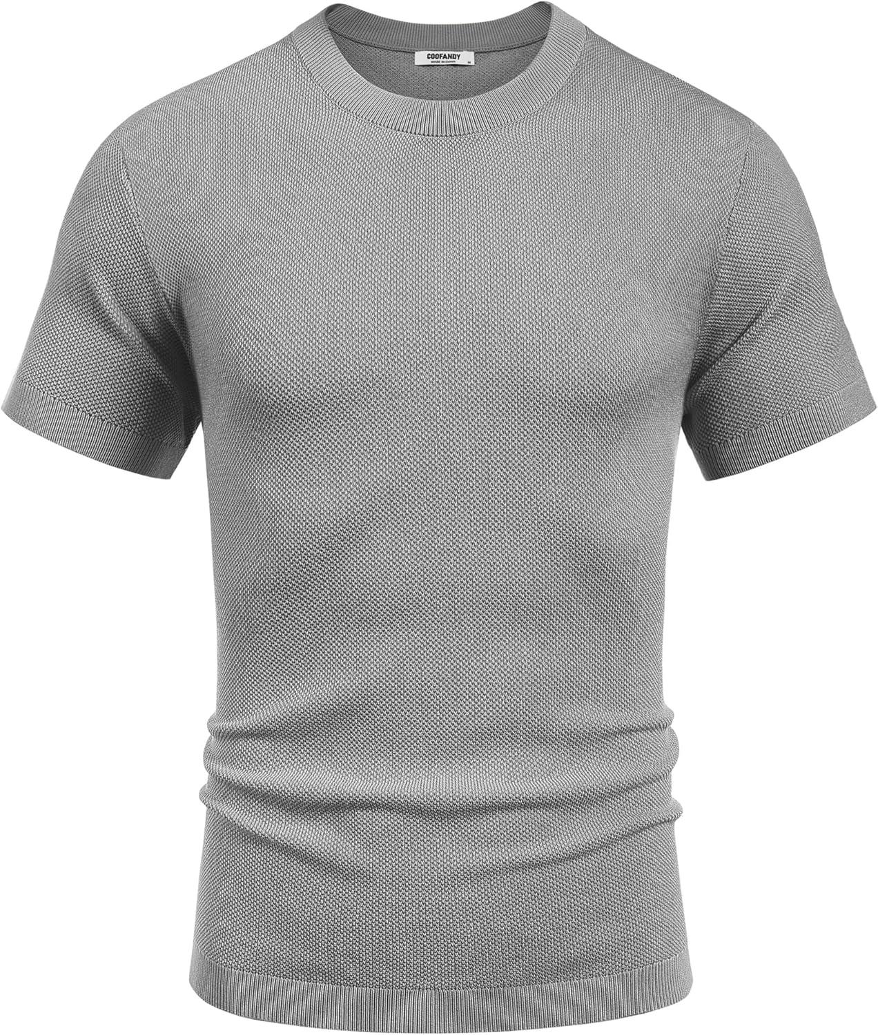 COOFANDY Men’s Knit T-Shirts Short Sleeve Crewneck Shirt Casual Textured Pullover Tees(Light Grey)