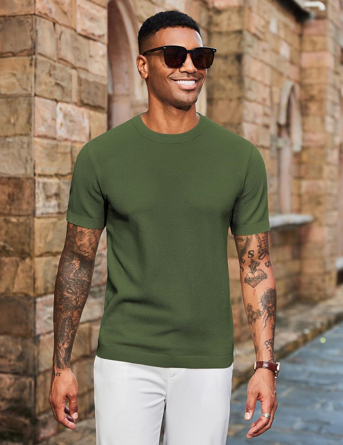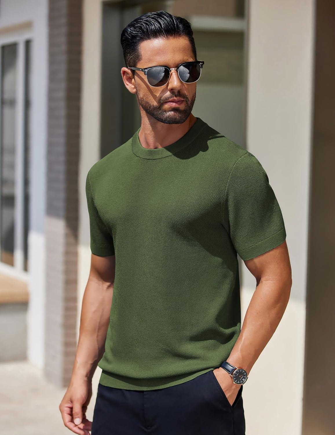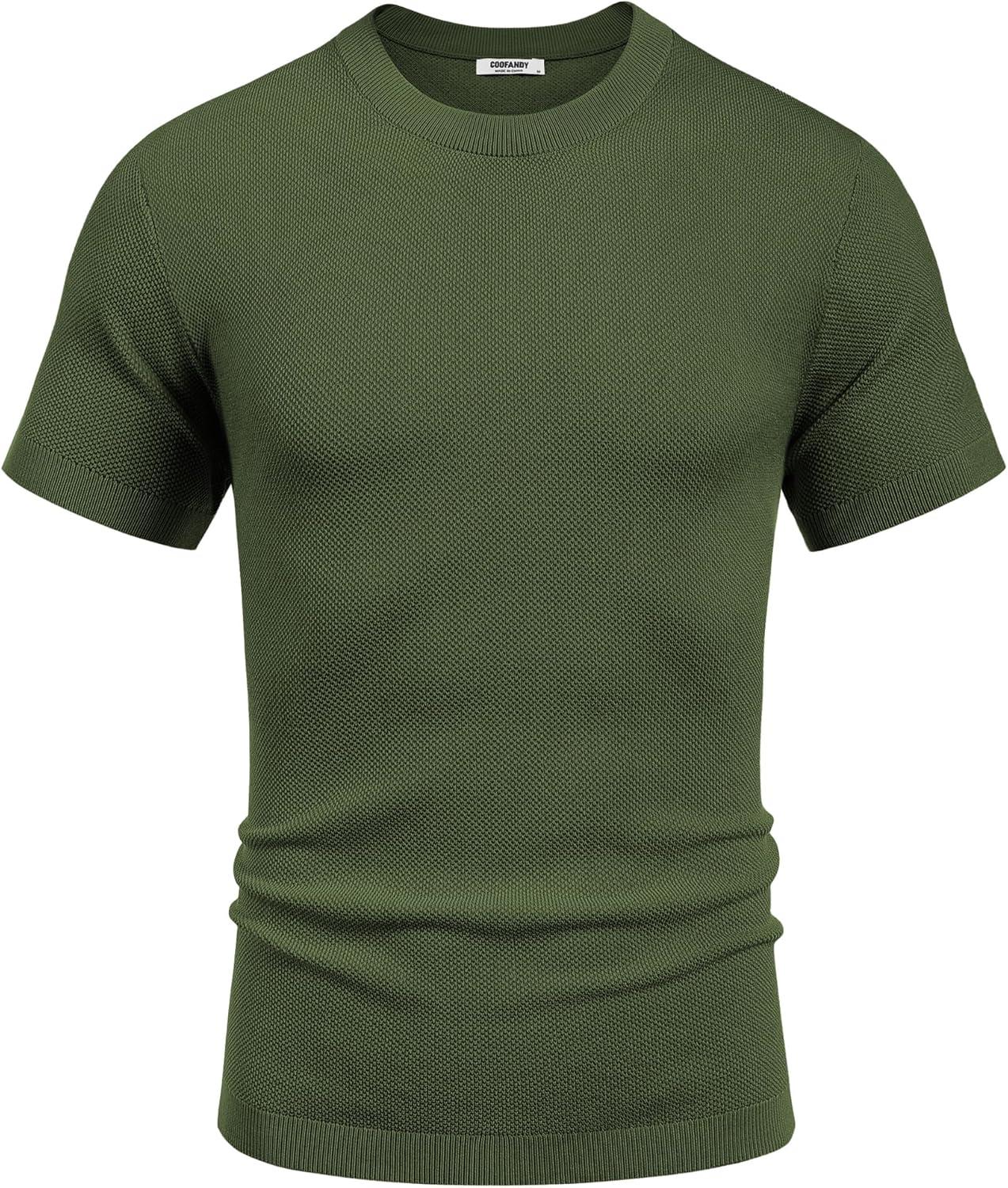 COOFANDY Men’s Knit T-Shirts Short Sleeve Crewneck Shirt Casual Textured Pullover Tees(Olive Green)