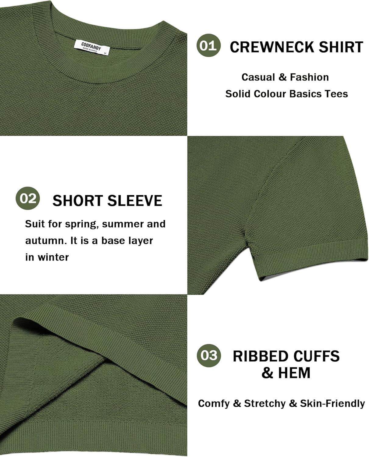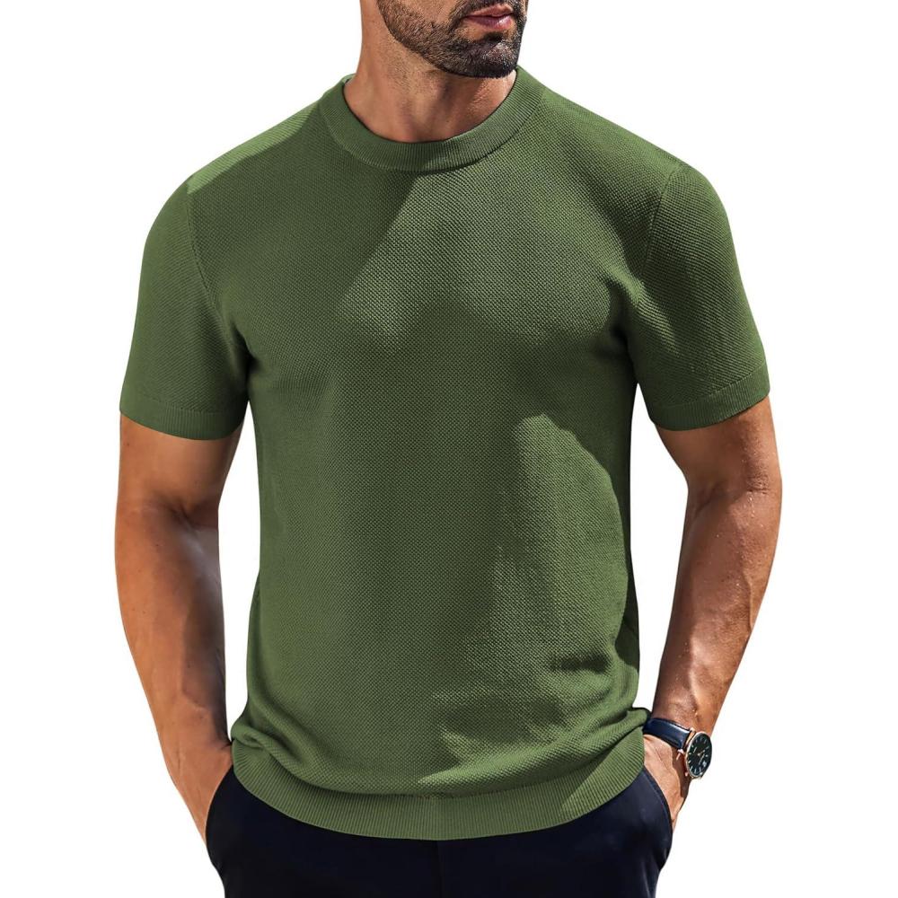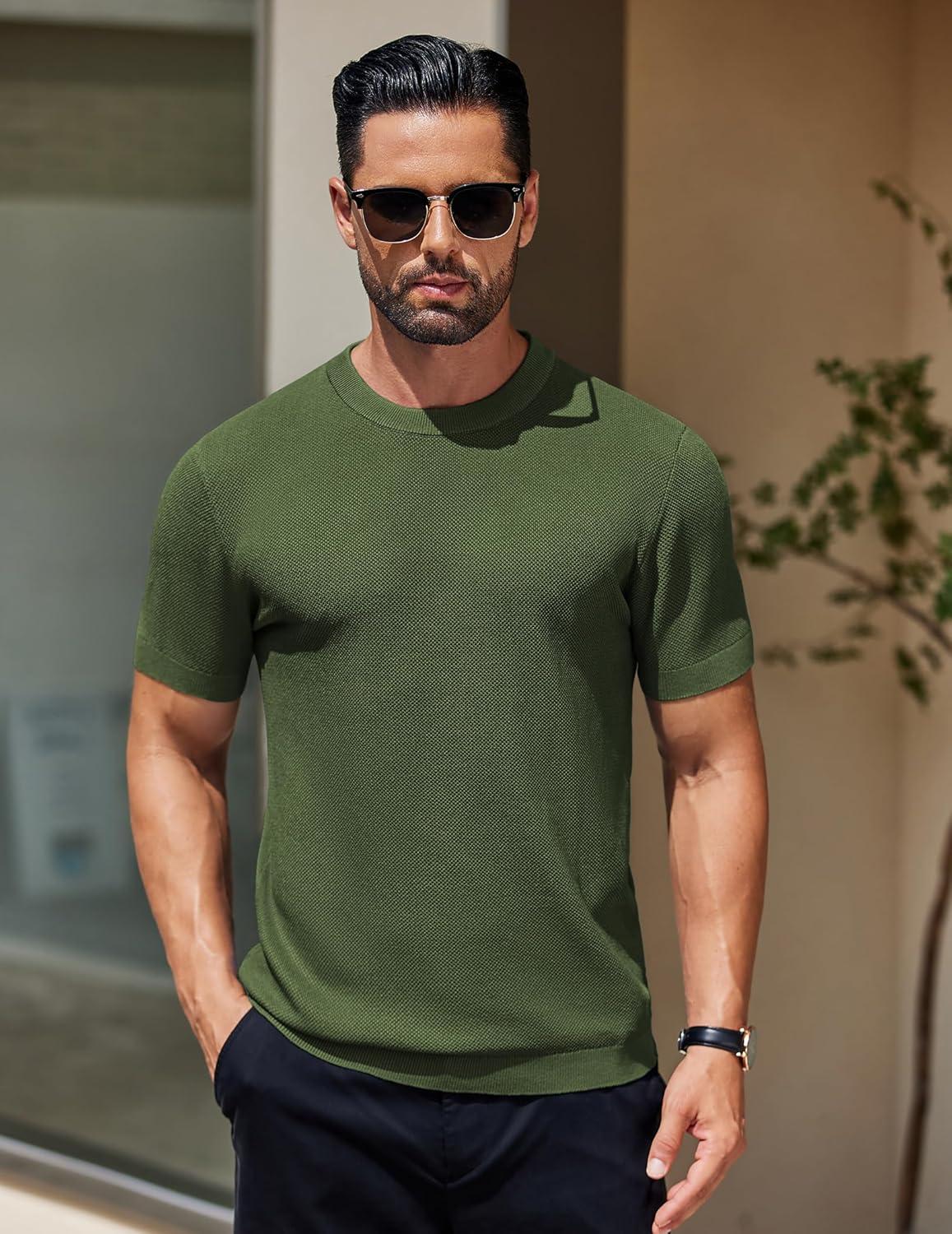 COOFANDY Men’s Knit T-Shirts Short Sleeve Crewneck Shirt Casual Textured Pullover Tees(Olive Green)