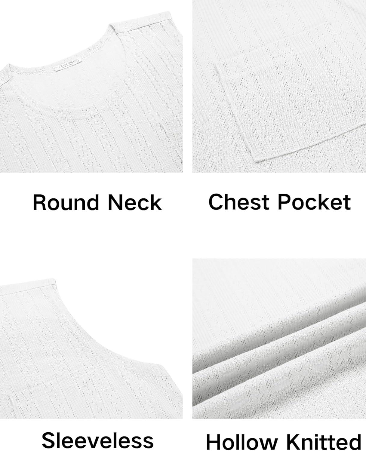 COOFANDY Men’s Knit Tank Tops Casual Sleeveless T Shirts Beach Tank Shirts with Pocket(White)