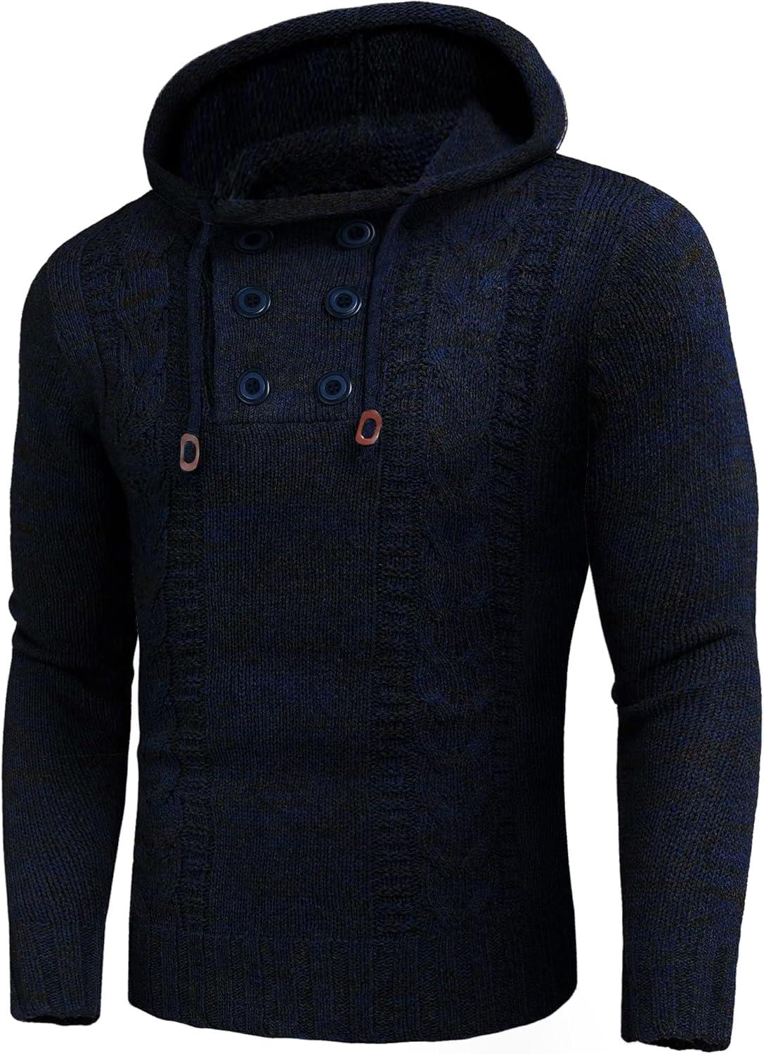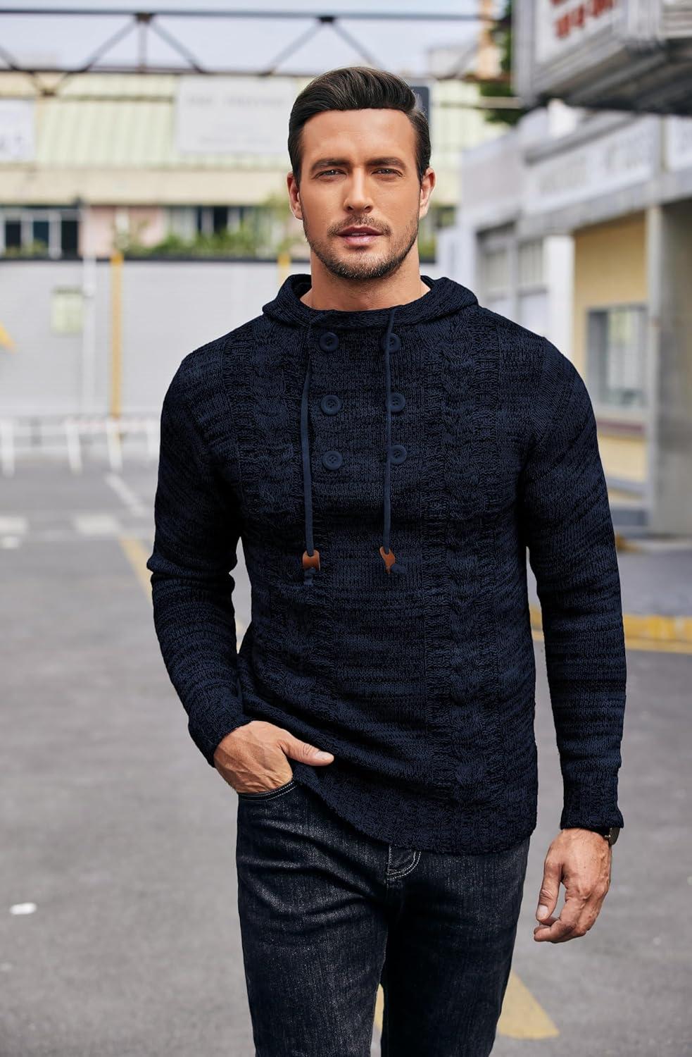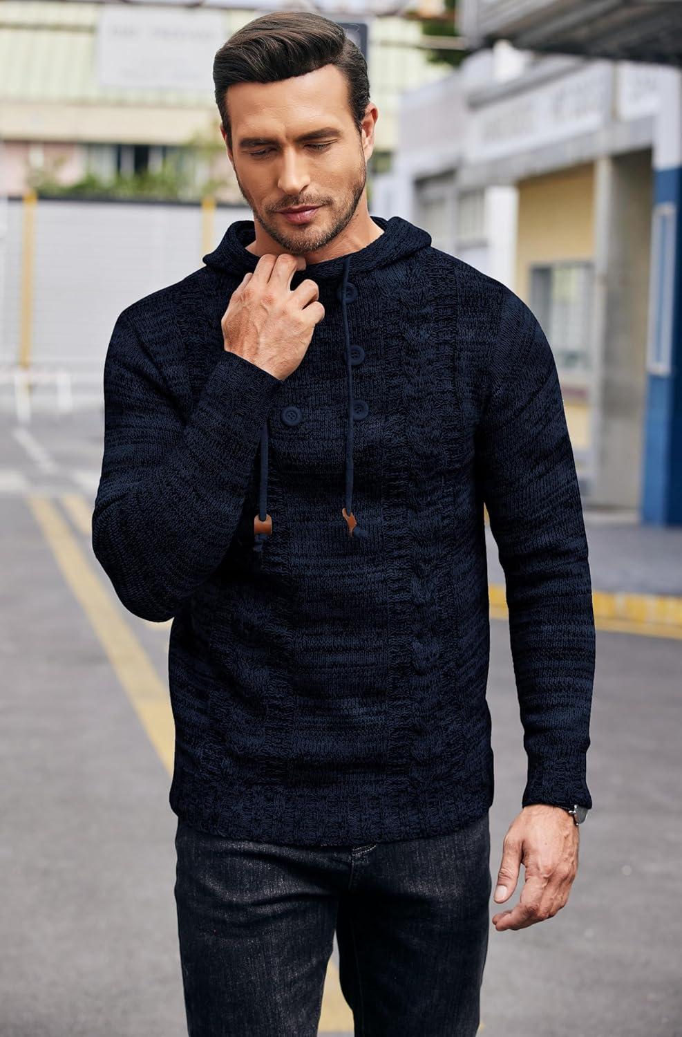 COOFANDY Men’s Knitted Hoodies Pullover Casual Long Sleeve Turtleneck Sweaters(Navy Blue)
