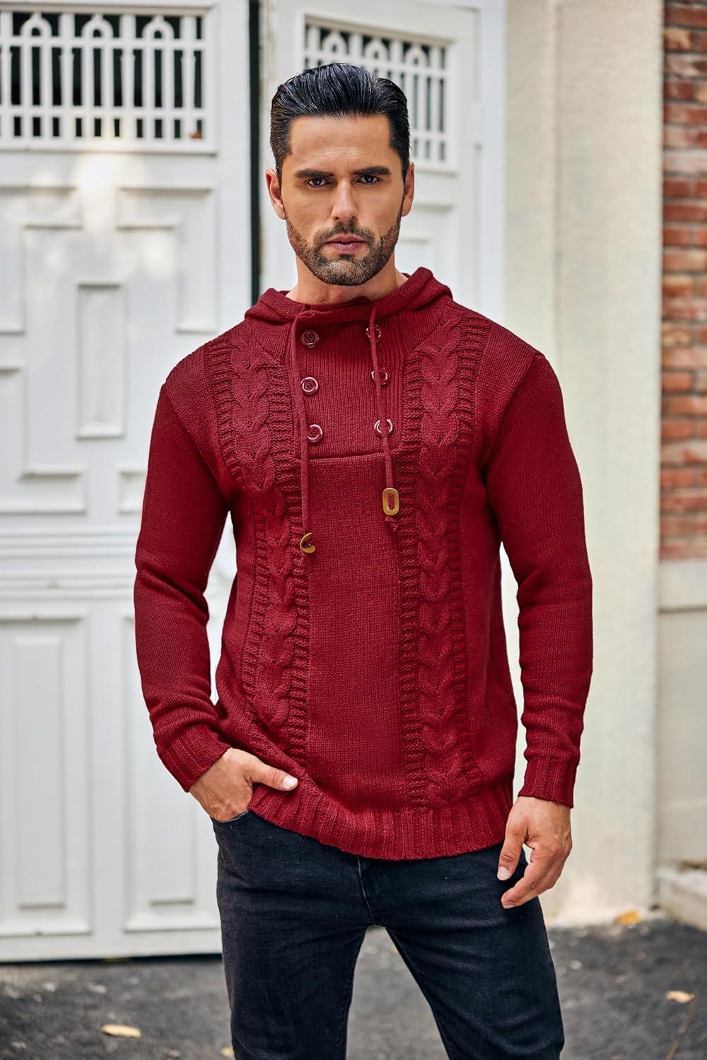 COOFANDY Men’s Knitted Hoodies Pullover Casual Long Sleeve Turtleneck Sweaters(Red)