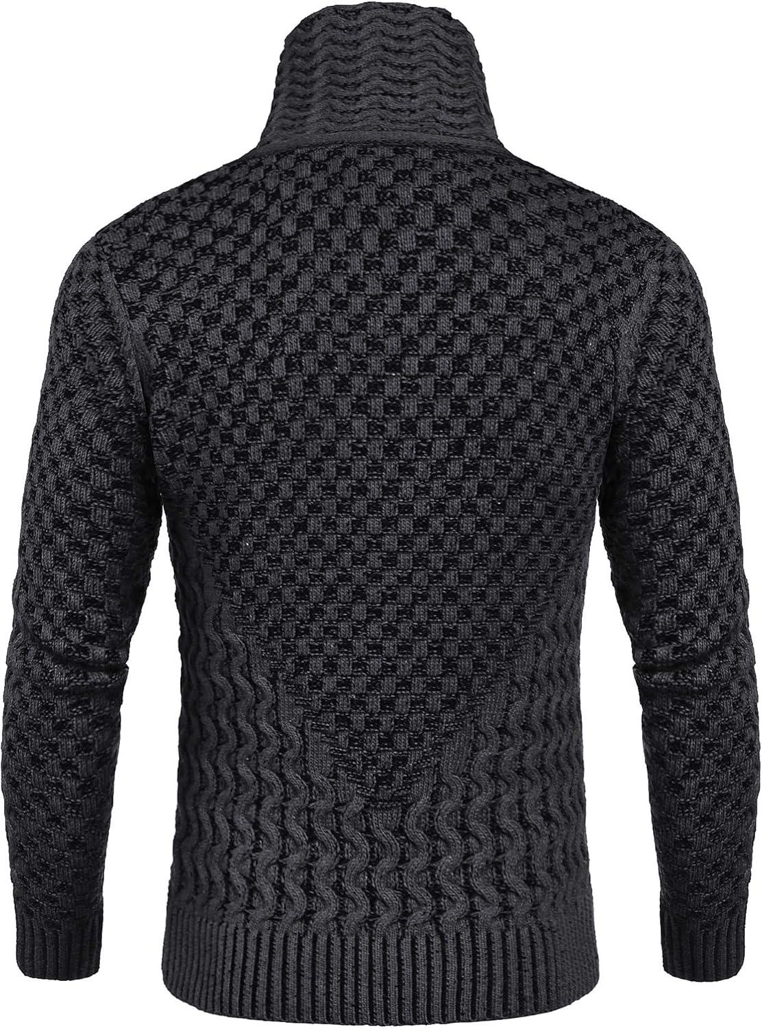 COOFANDY Men’s Knitted Turtleneck Sweater Long Sleeve Slim Fit Designer Shawl Collar Pullover(A- Dark Grey)
