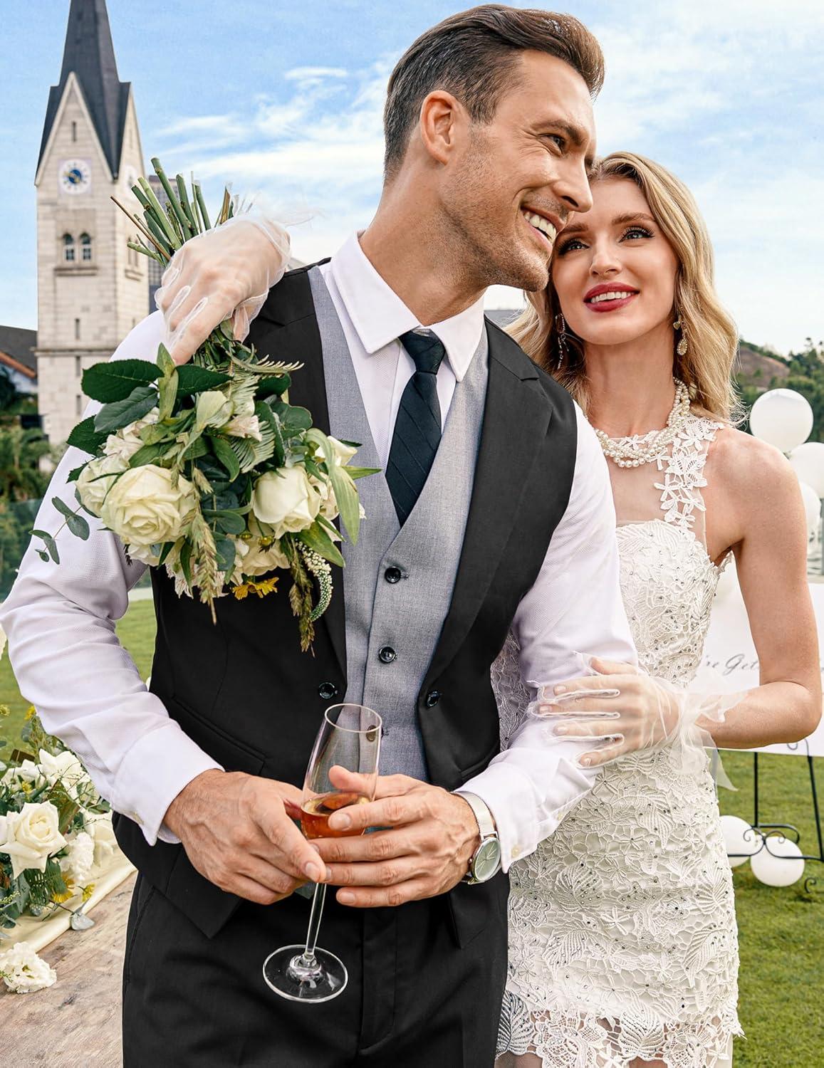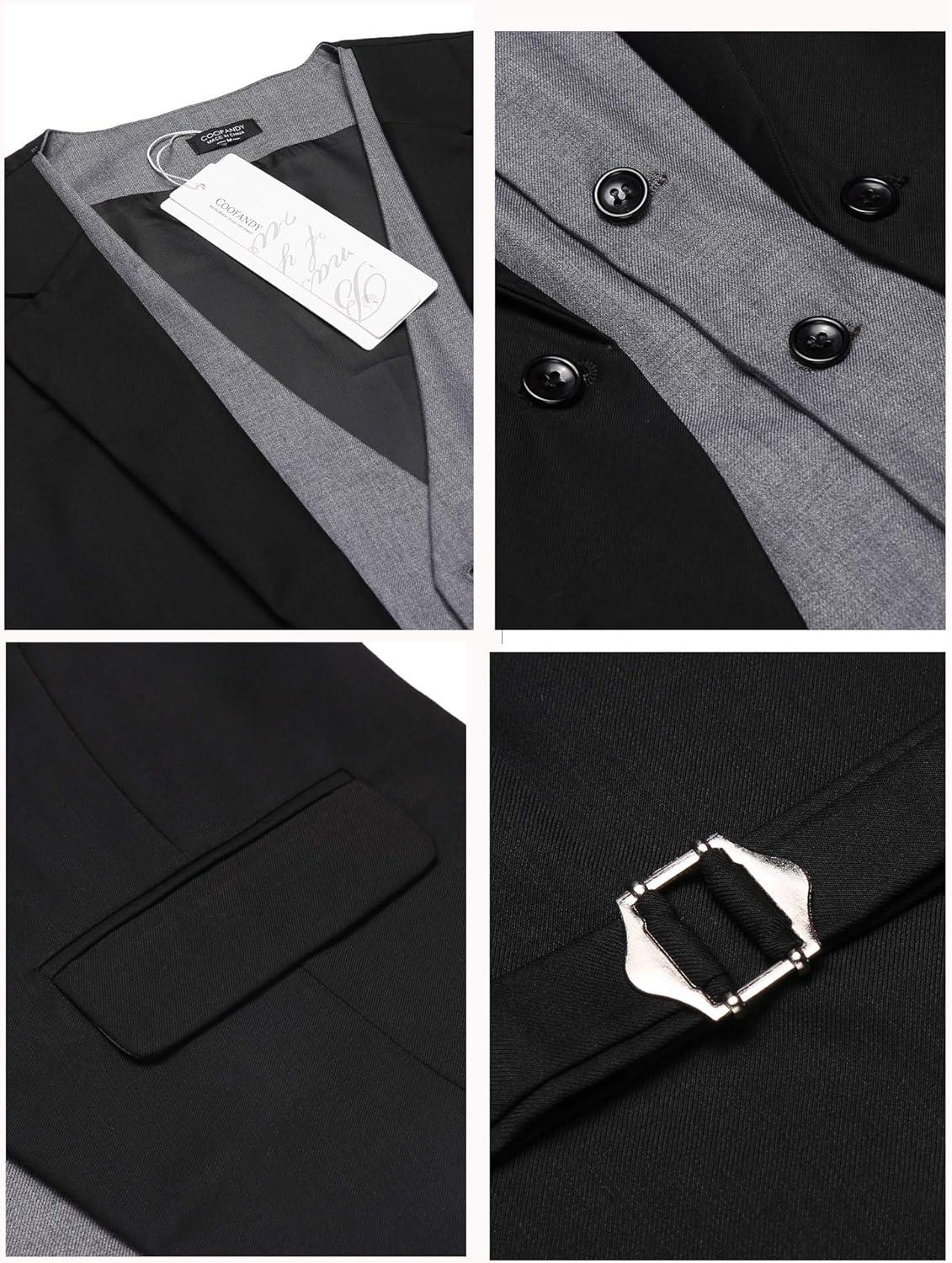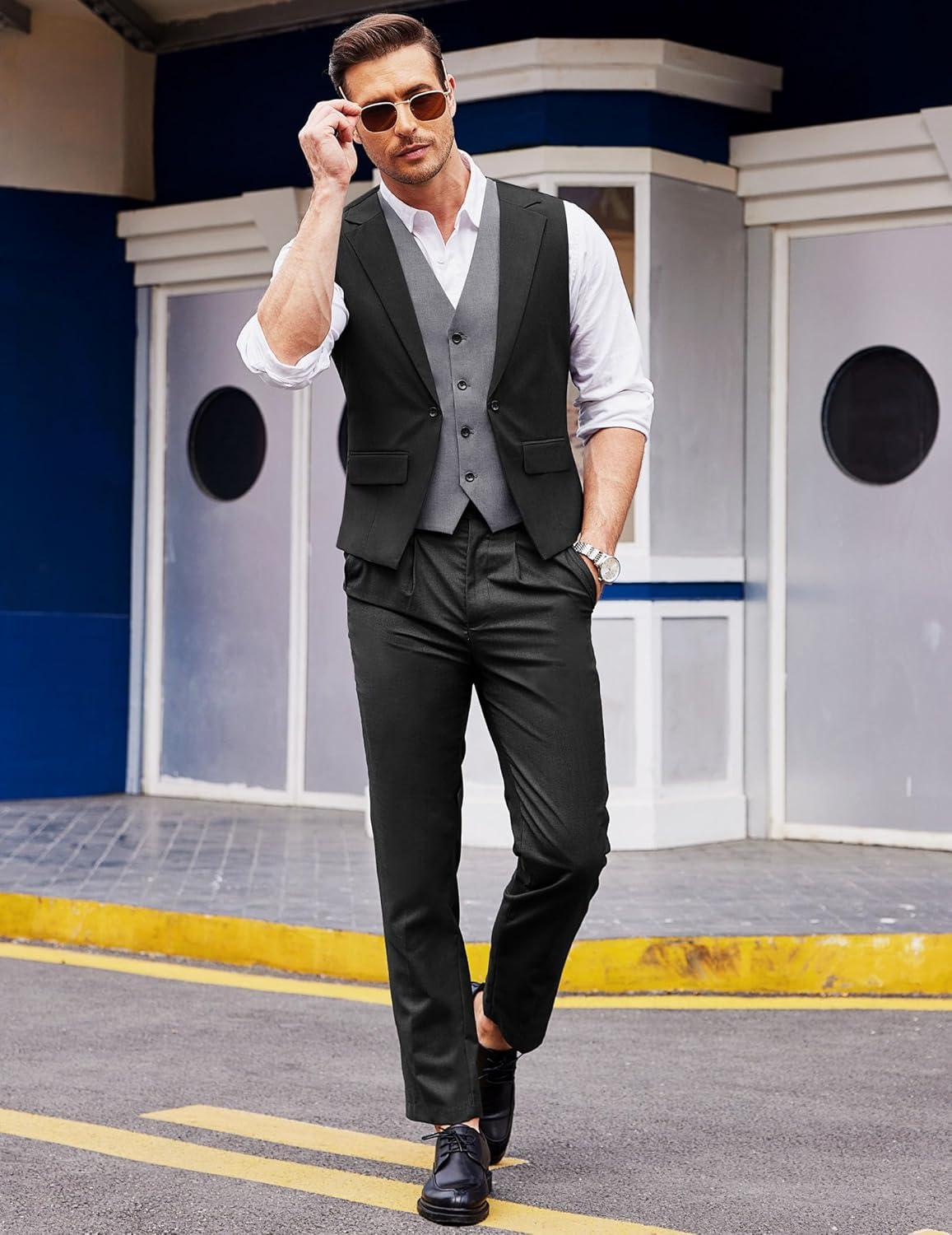 COOFANDY Men’s Layered Suit Vest Business Dress Vests Formal Wedding Waistcoat Slim Fit(Black)