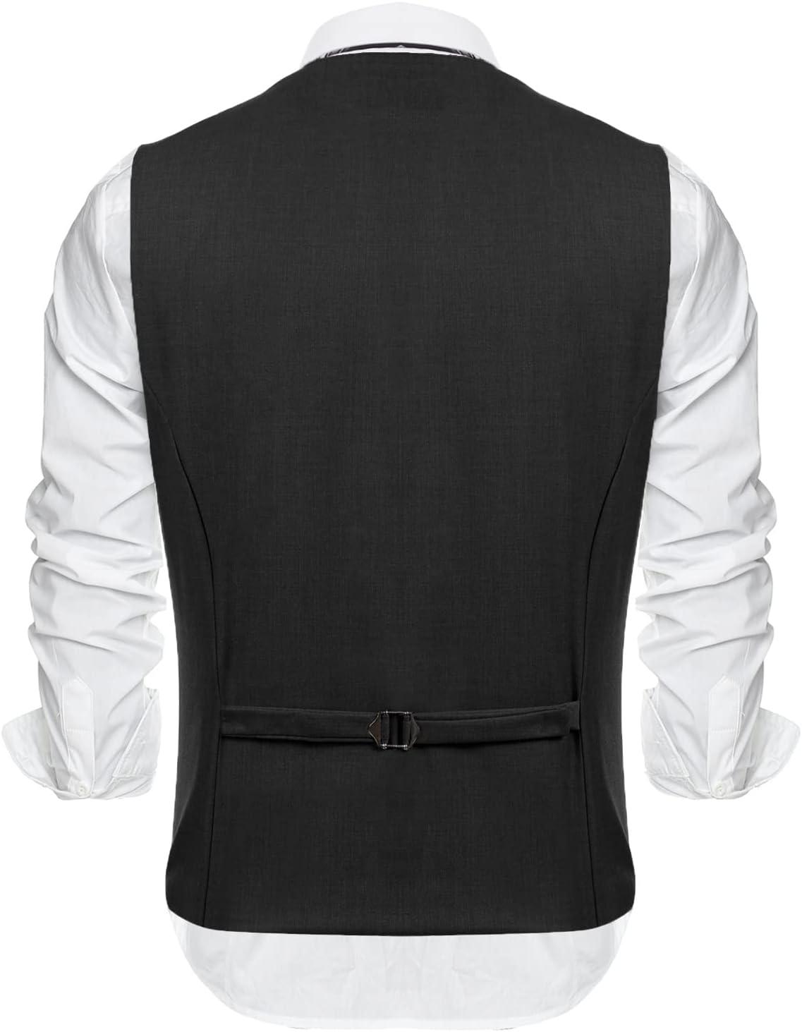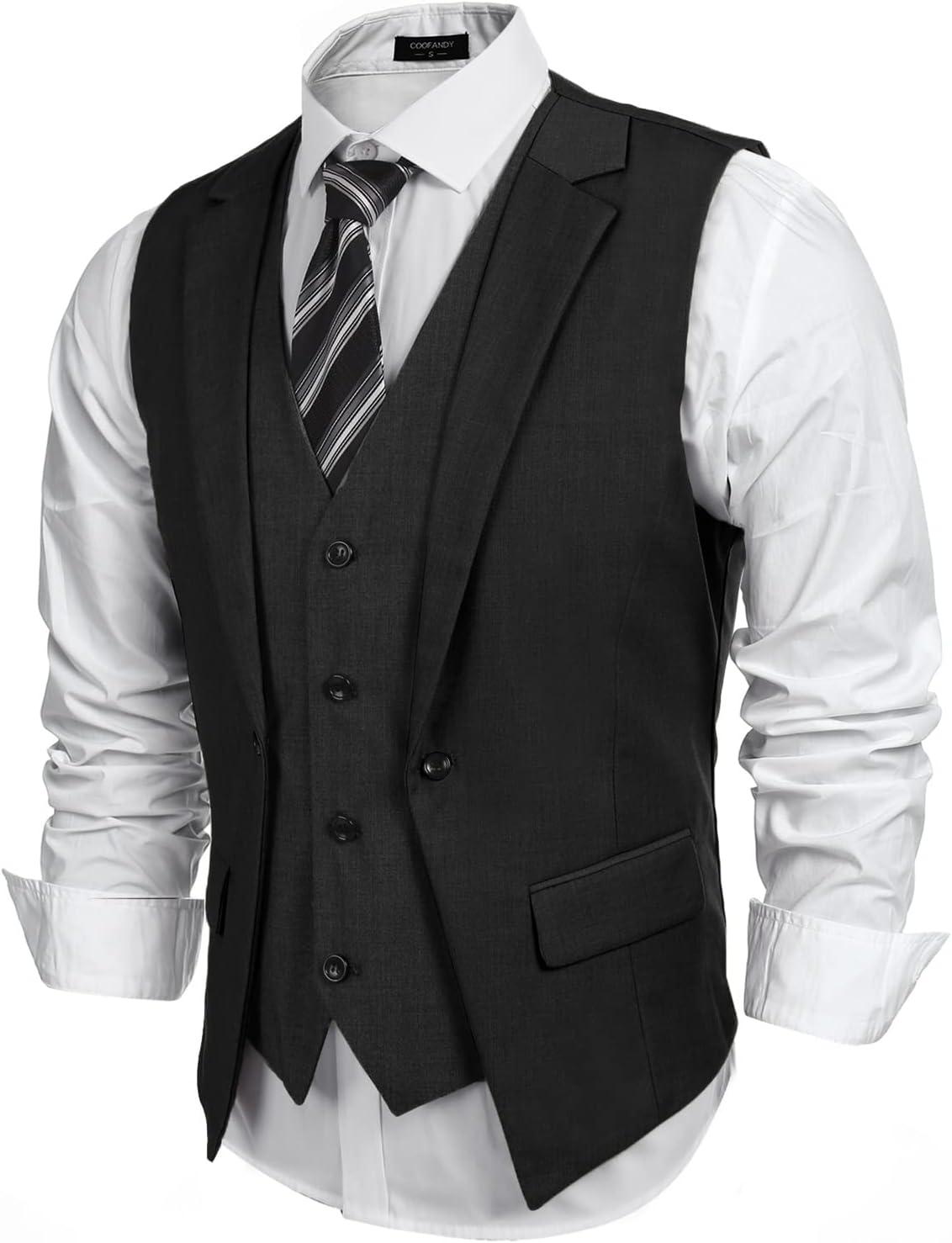 COOFANDY Men’s Layered Suit Vest Business Dress Vests Formal Wedding Waistcoat Slim Fit(Pure Black)
