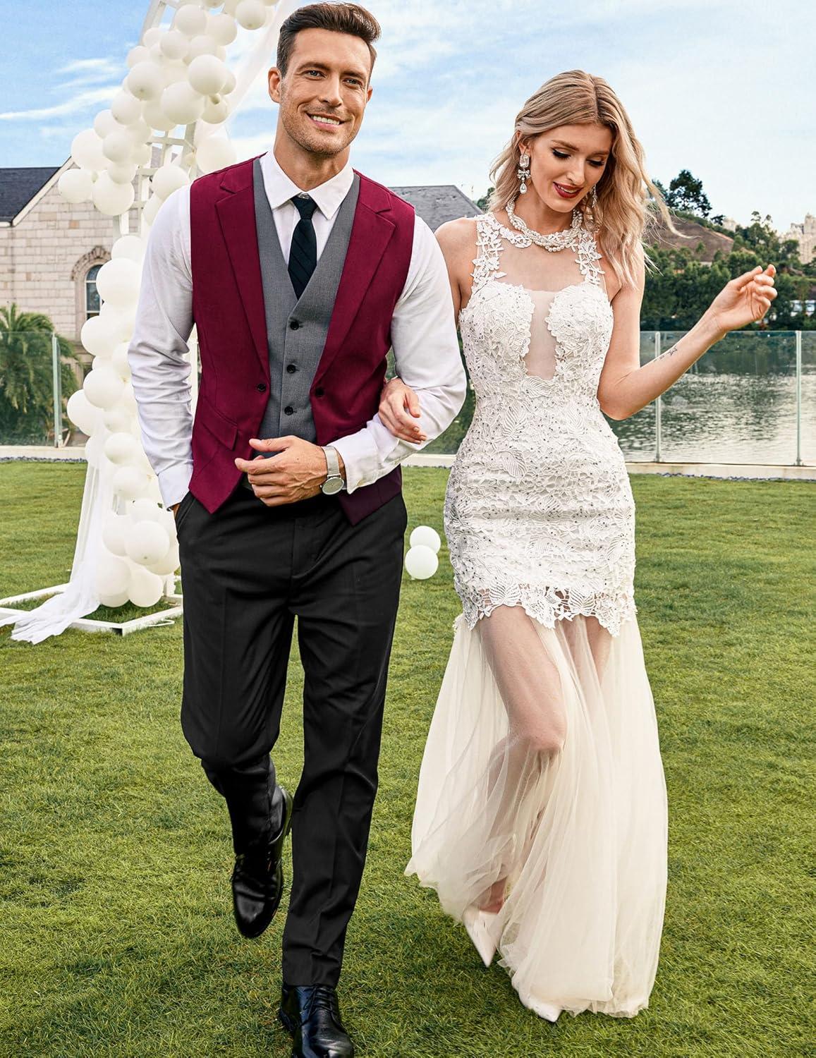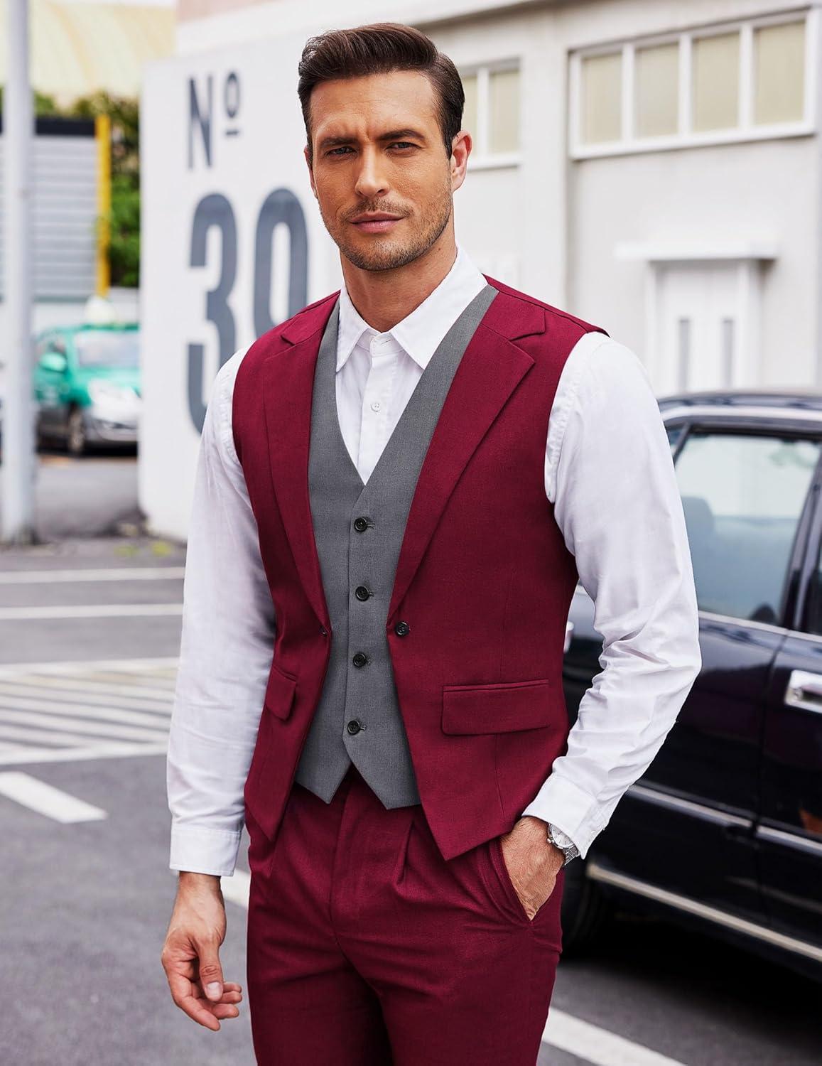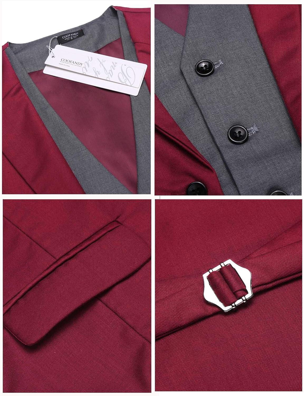 COOFANDY Men’s Layered Suit Vest Business Dress Vests Formal Wedding Waistcoat Slim Fit(Wine Red)