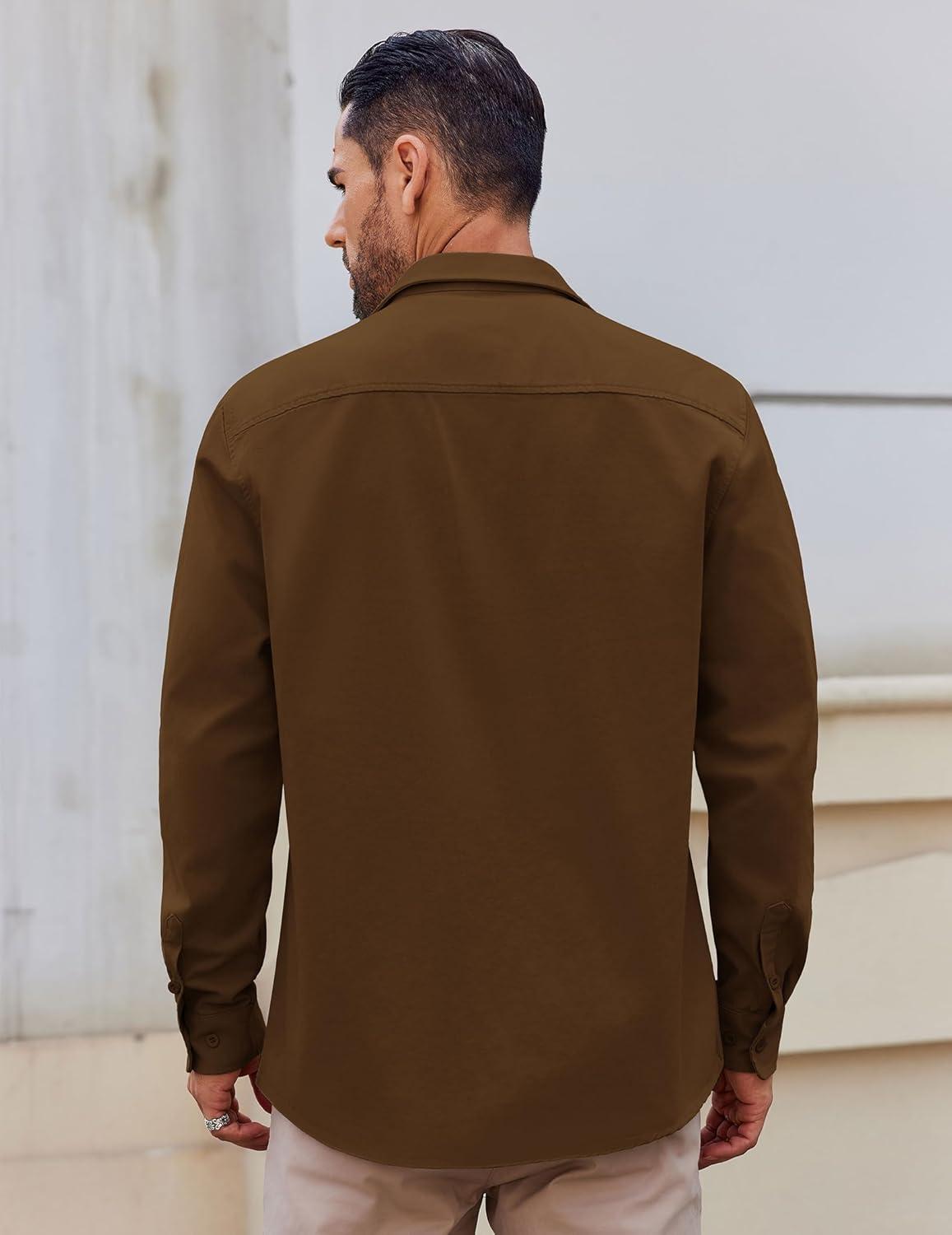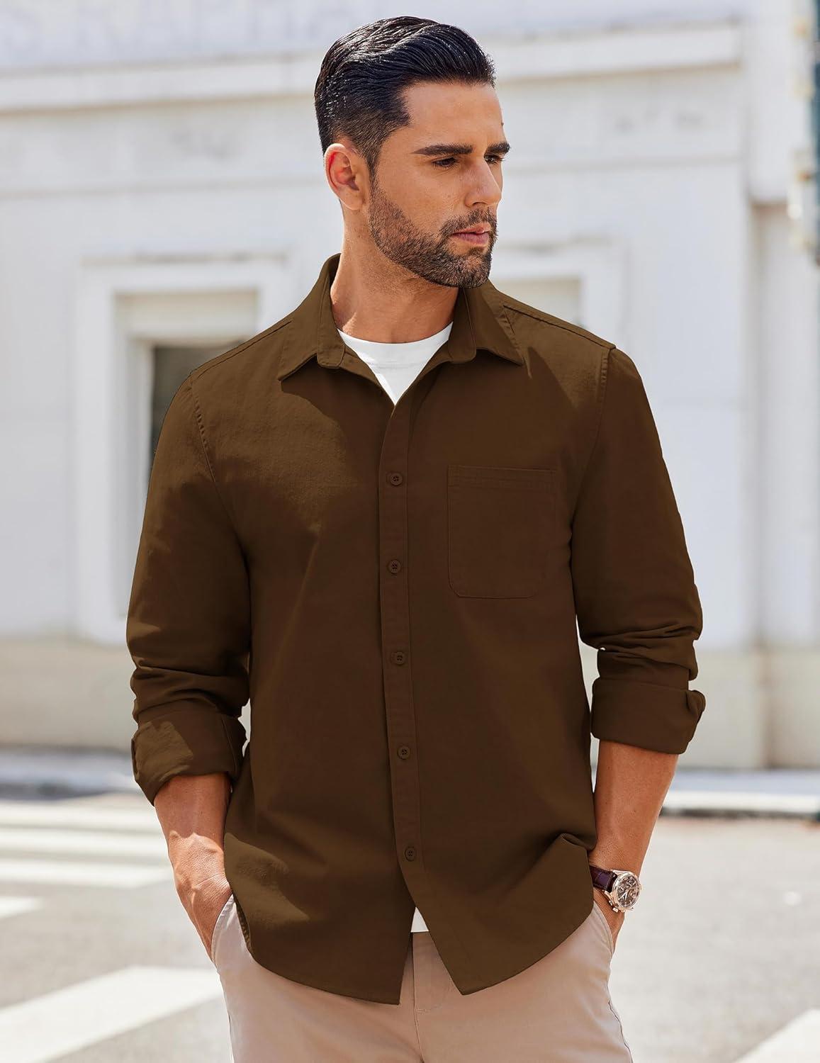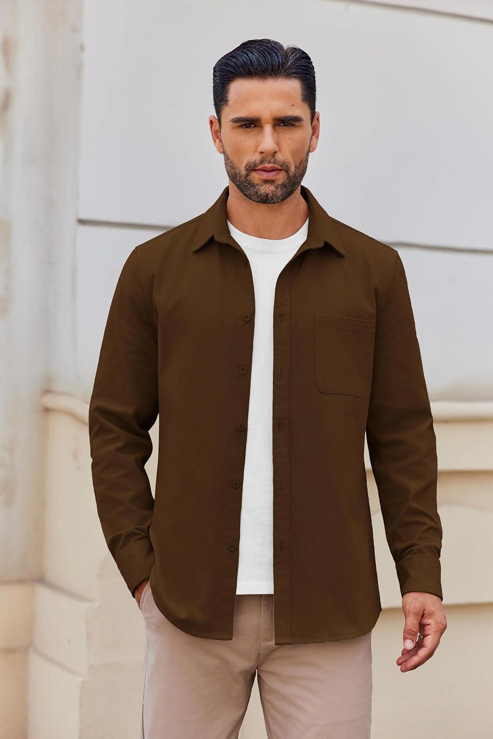 COOFANDY Mens Lightweight Button Down Shirt Jacket Casual Shacket Overshirt(Brown)
