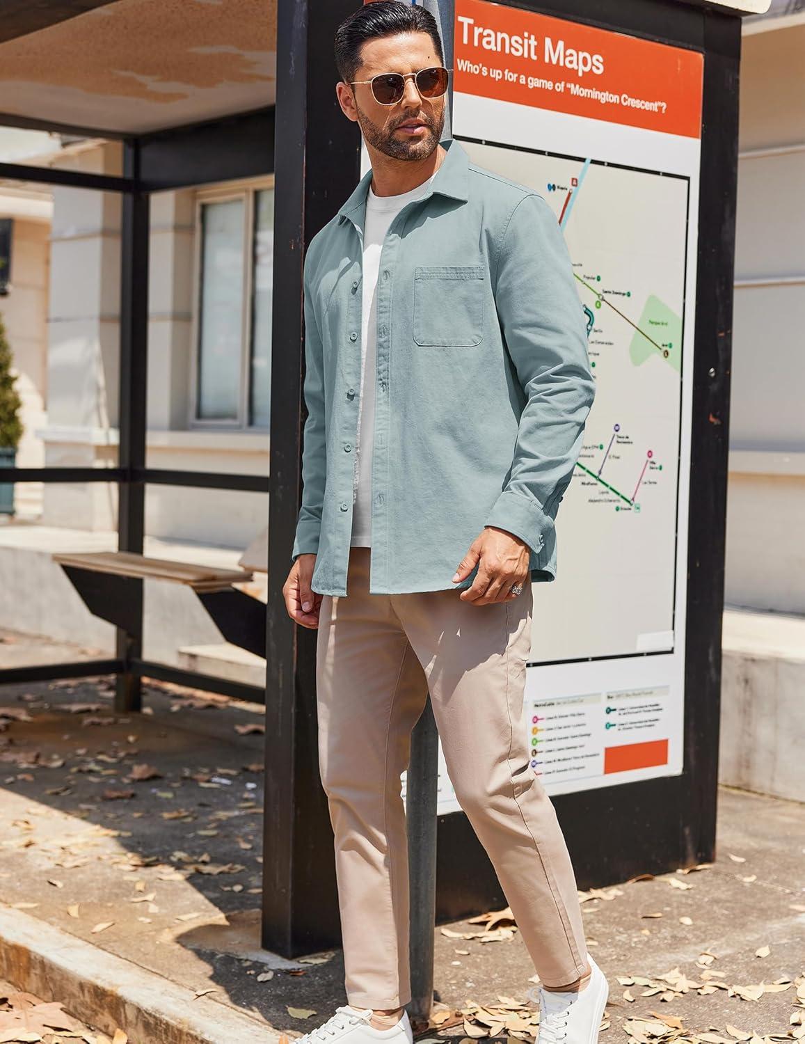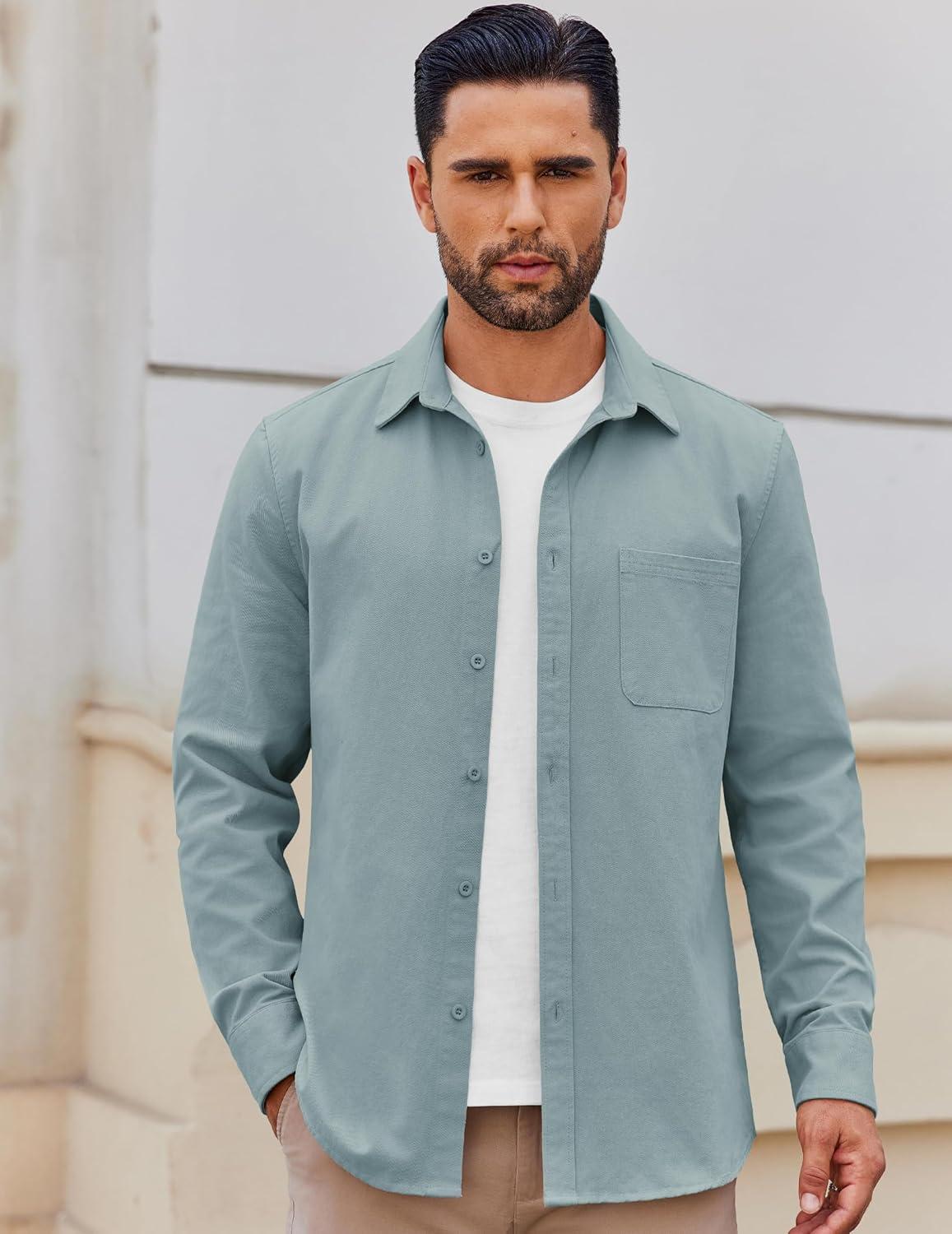 COOFANDY Mens Lightweight Button Down Shirt Jacket Casual Shacket Overshirt(Light Blue)