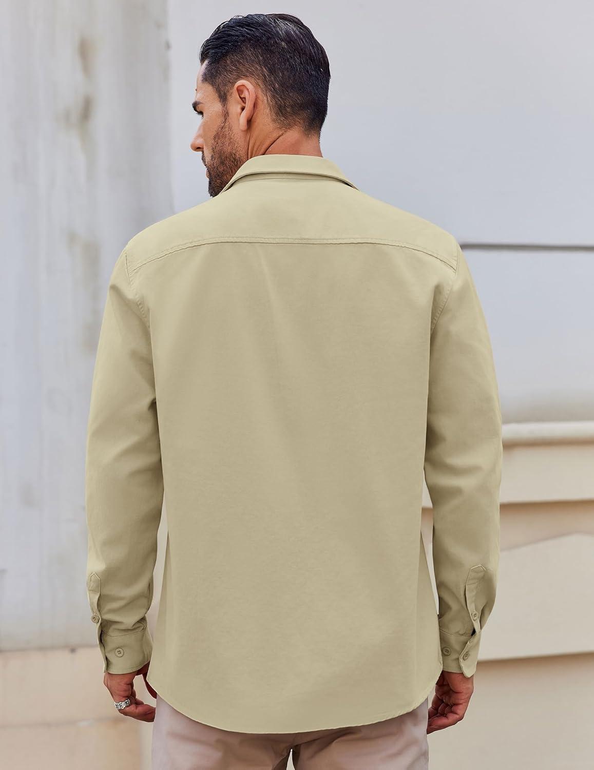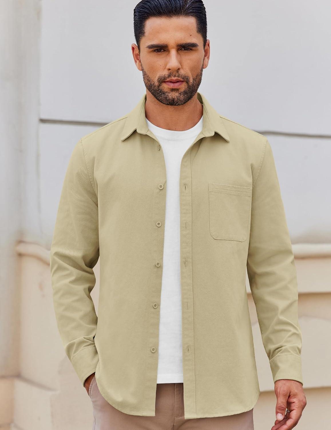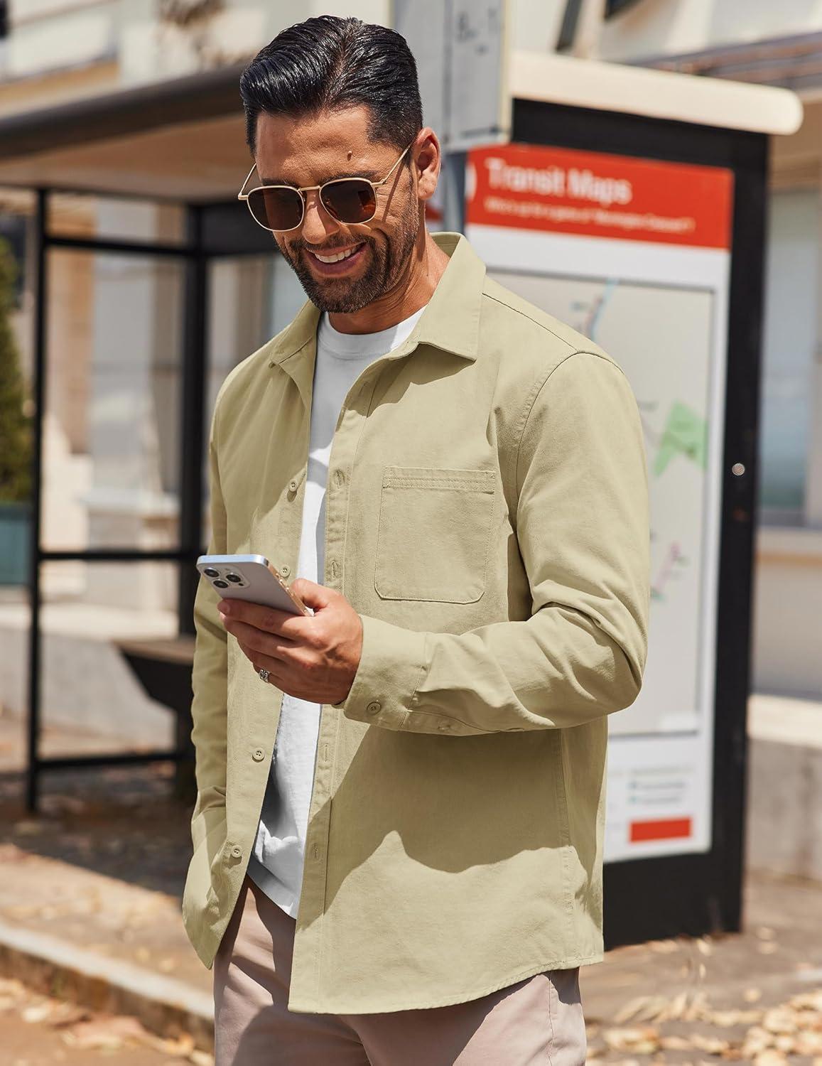 COOFANDY Mens Lightweight Button Down Shirt Jacket Casual Shacket Overshirt(Light Khaki)