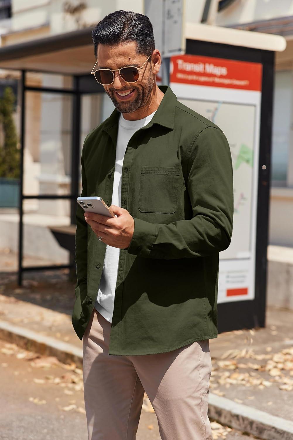 COOFANDY Mens Lightweight Button Down Shirt Jacket Casual Shacket Overshirt(Olive Green)
