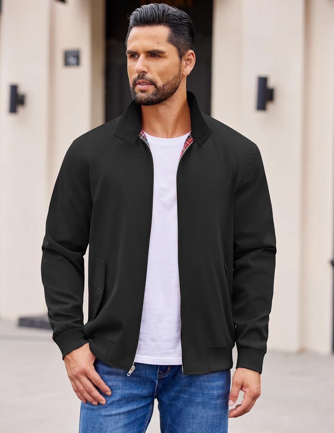 COOFANDY Mens Lightweight Jackets Casual Windbreaker Zip Up Coat Stand Collar Golf Jacket Stylish Fall Work Business(Black)
