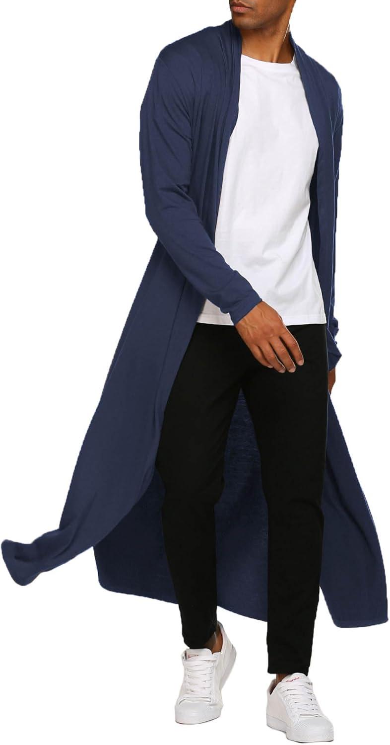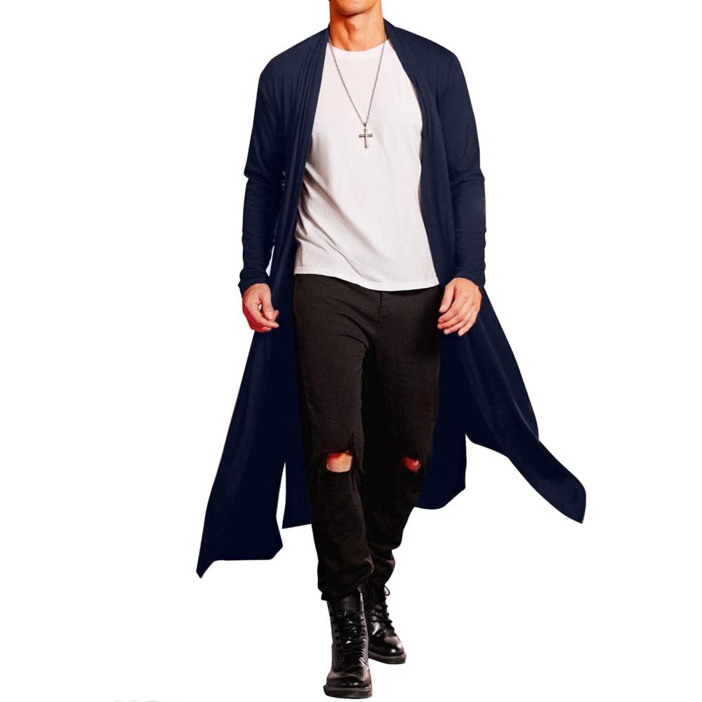COOFANDY Men’s Lightweight Ruffle Shawl Collar Cardigan Open Front Long Length Drape Cape Overcoat(Navy Blue)