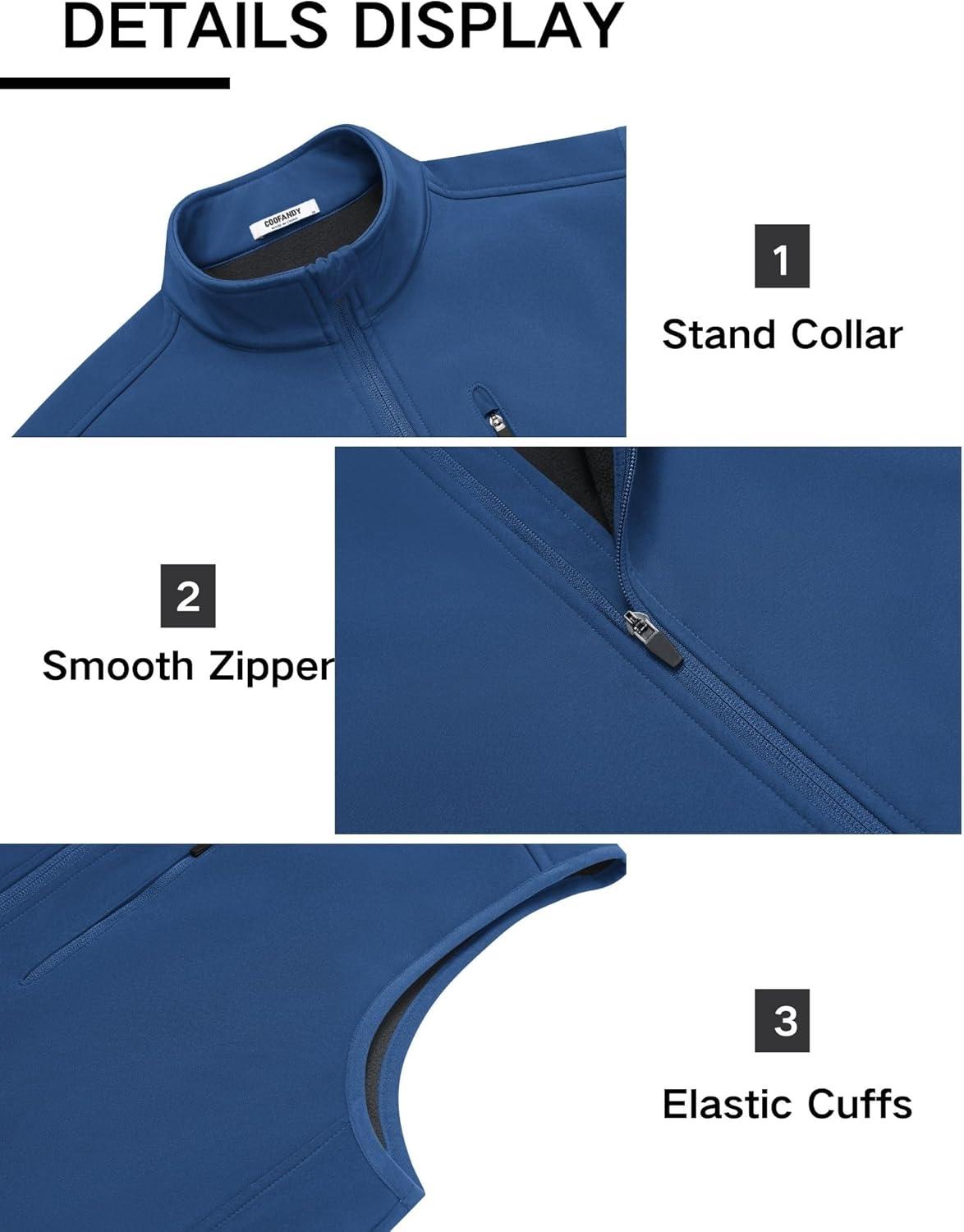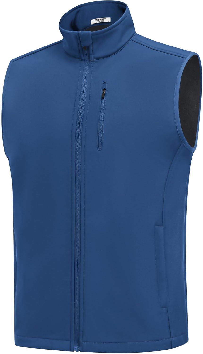 COOFANDY Mens Lightweight Softshell Vest Windproof Sleeveless Jacket Zip Up Fleece Lined Vest Outerwear for Golf Running(Navy Blue)