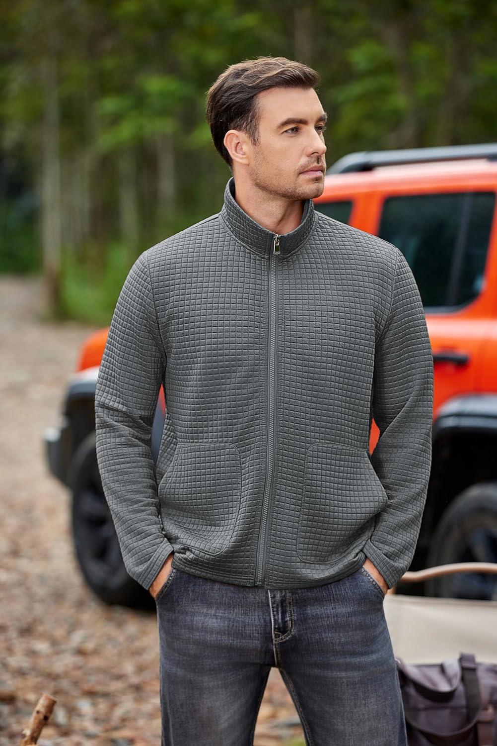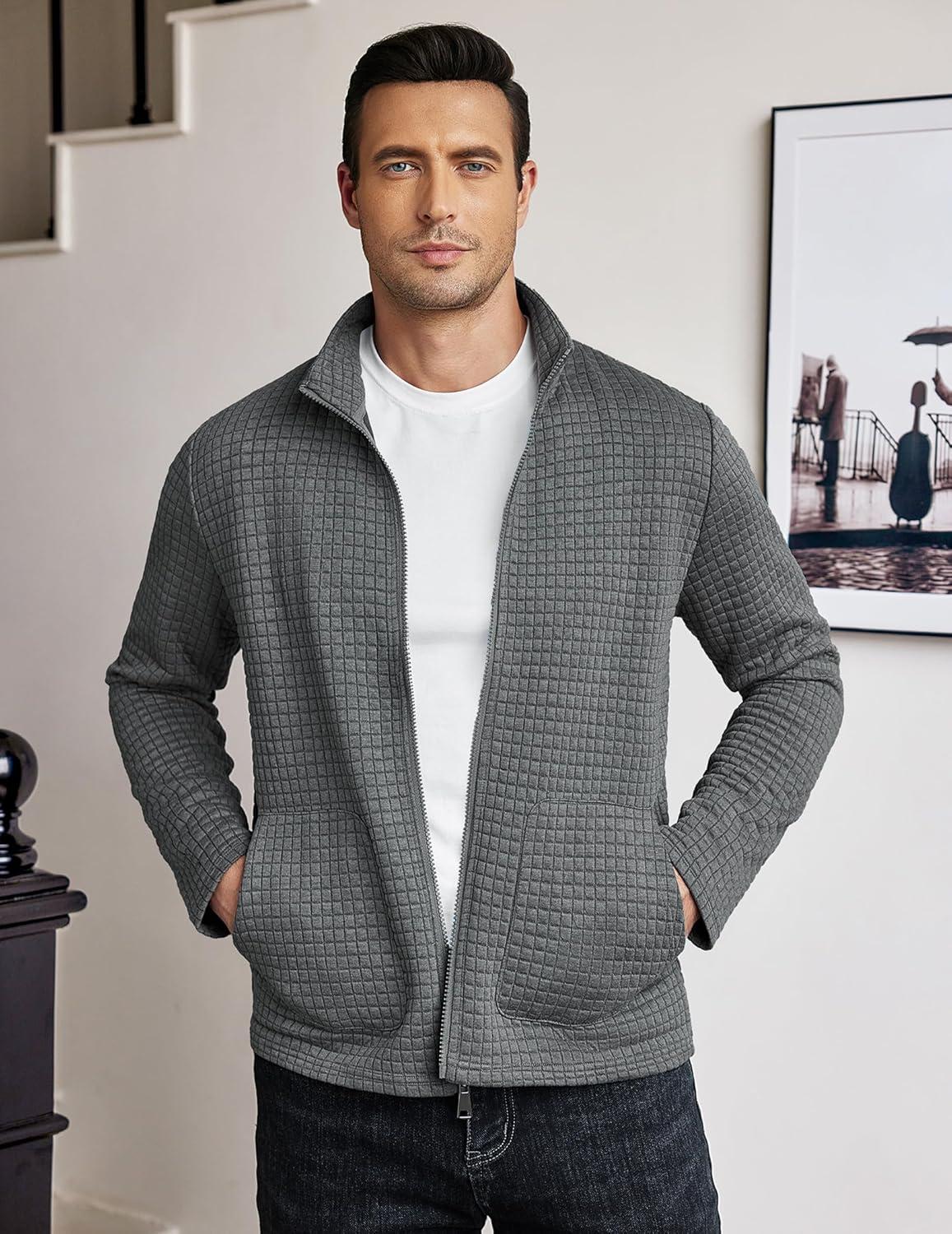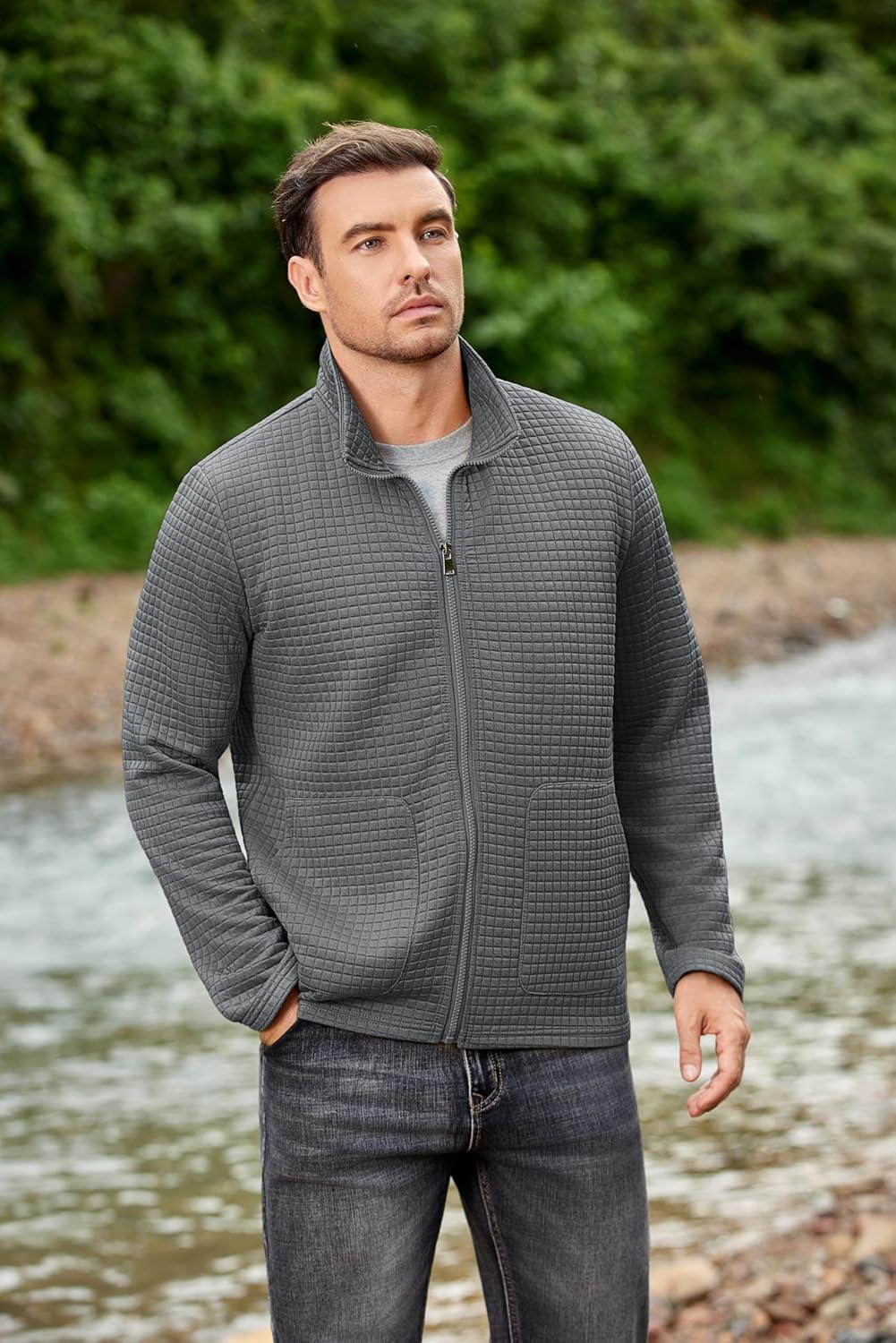 COOFANDY Men’s Lightweight Varsity Jacket Casual Bomber Jackets Waffle Zip Up Sweatshirts with Pocket(Dark Grey)