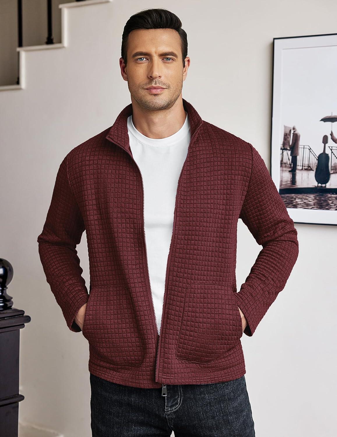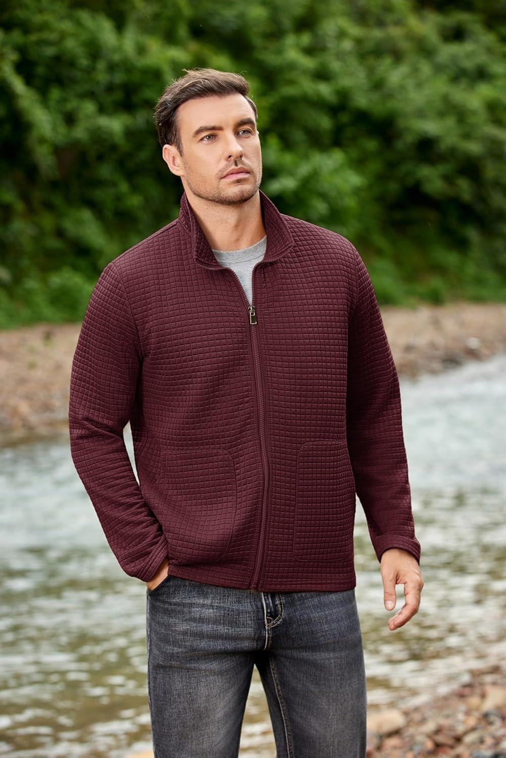 COOFANDY Men’s Lightweight Varsity Jacket Casual Bomber Jackets Waffle Zip Up Sweatshirts with Pocket(Dark Red)