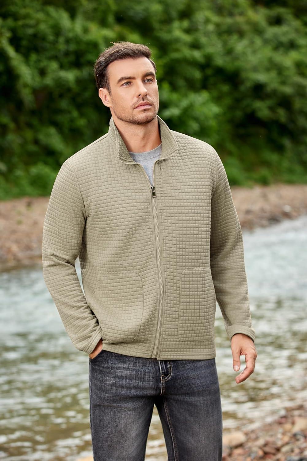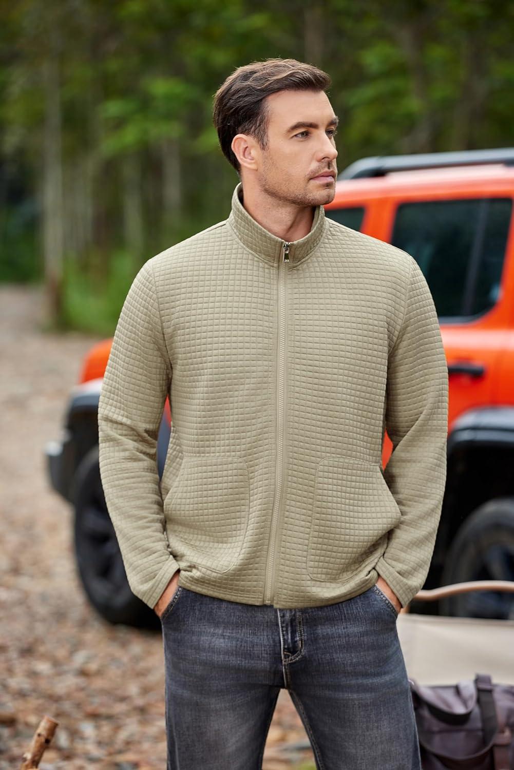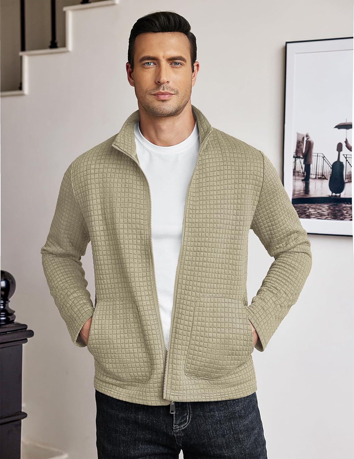 COOFANDY Men’s Lightweight Varsity Jacket Casual Bomber Jackets Waffle Zip Up Sweatshirts with Pocket(Light Khaki)